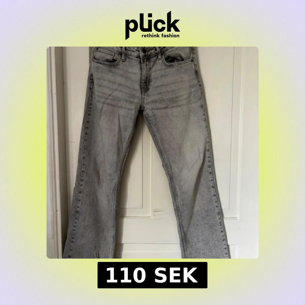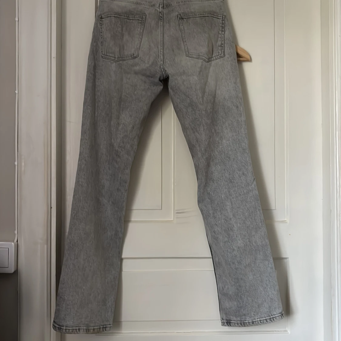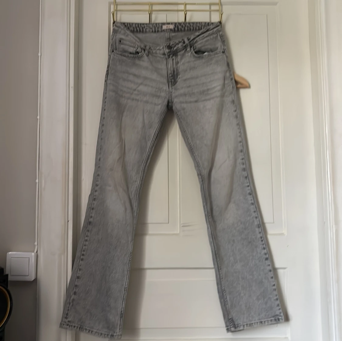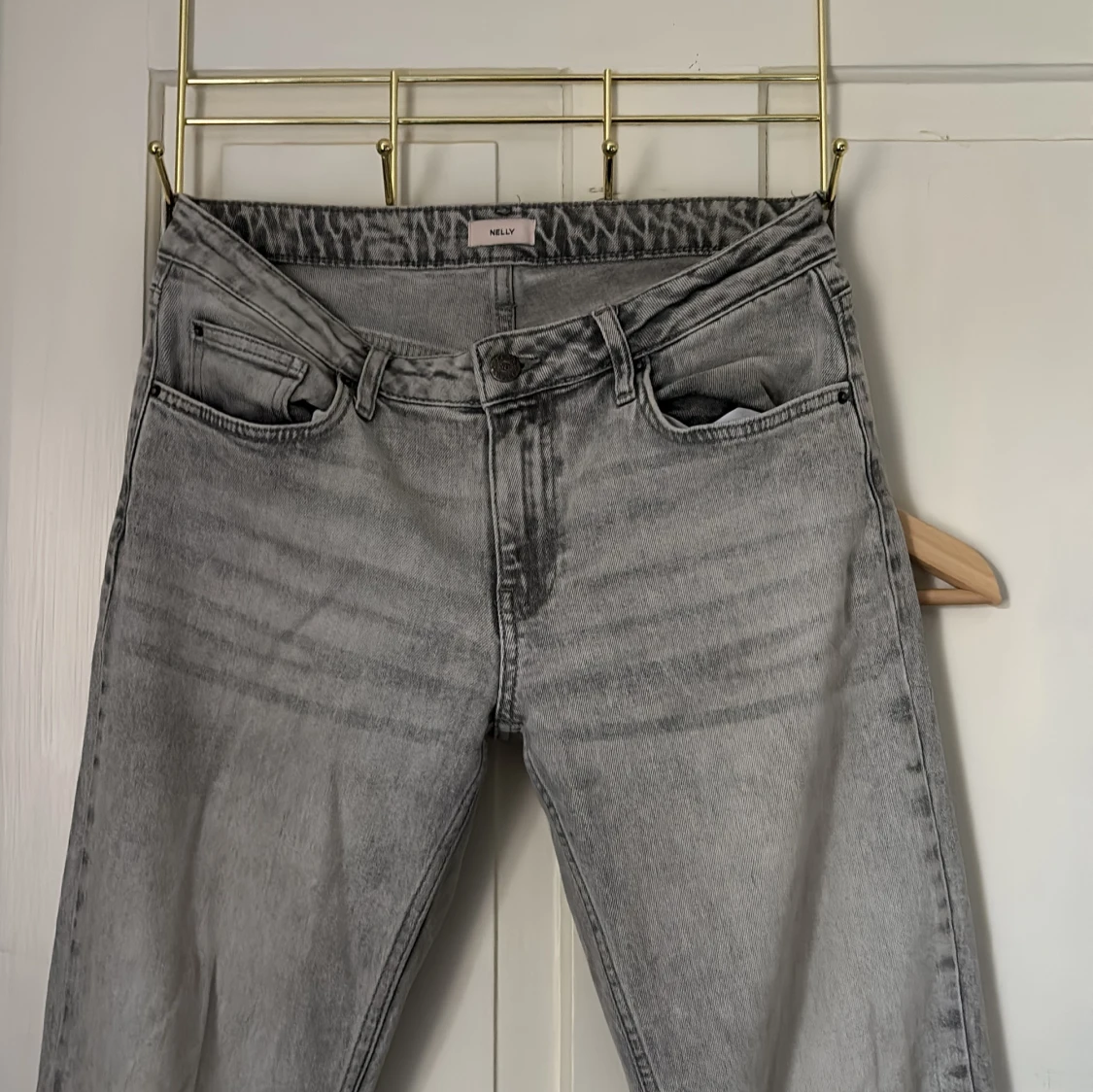 Snygga grå jeans från Nelly med raka ben och klassisk fyrficksmodell. Jeansen har en midrise/lowrise tvättad look. Perfekta till sneakers eller boots för en chill vardagsstil.