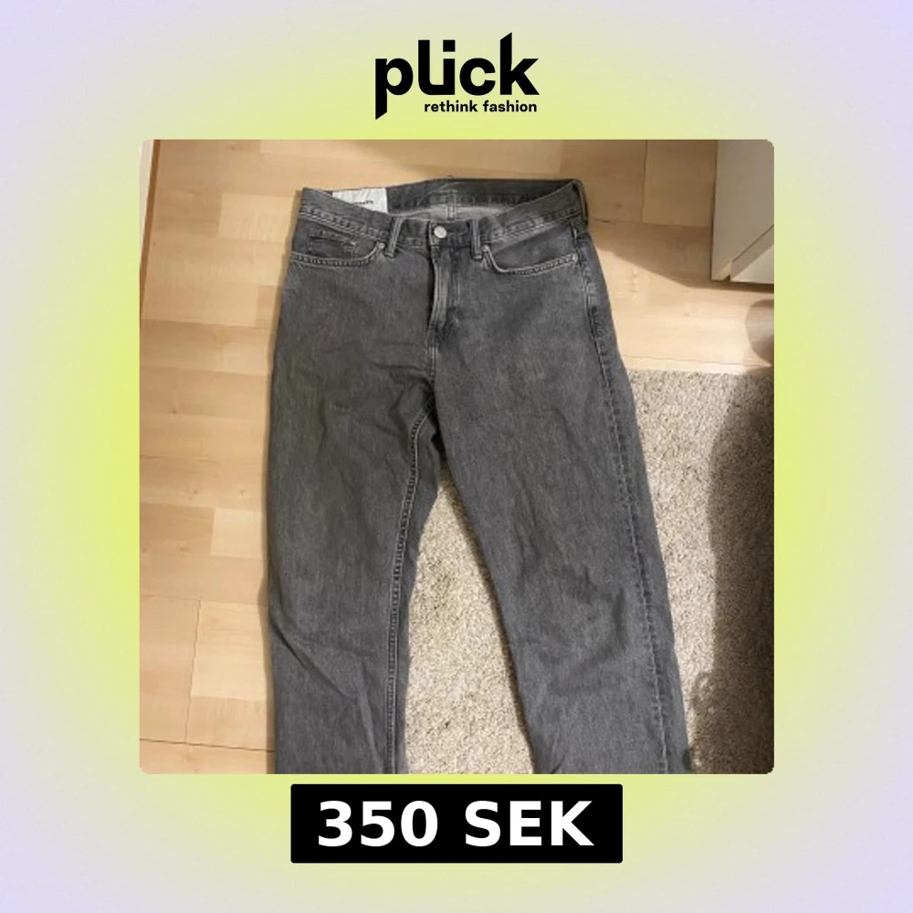 Säljer ett par grå jeans från H&M i relaxed fit. De har klassisk femficksdesign, raka ben och normal midja. Jeansen är tillverkade i bomull och har en snygg, lite tvättad grå färg som passar till det mesta. Perfekta för en chill och avslappnad stil. Pris kan diskuteras!