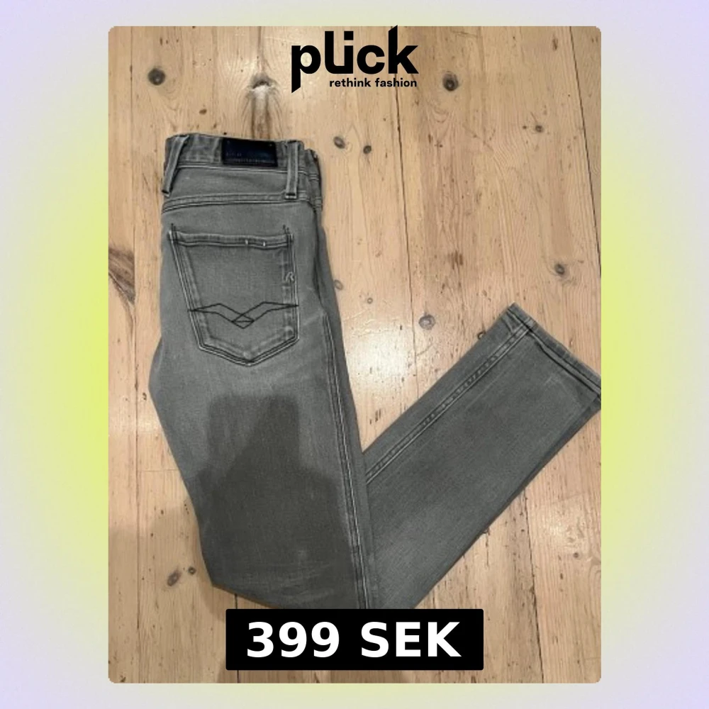 Snygga grå jeans från Replay med slim fit passform och klassisk femficksdesign. De är storlek 30W 34L men jag skulle säga att de sitter mer som 29W 32L. Byxorna har svarta detaljer, diskret Replay-logga och raka ben. Jeansen är i otroligt bra skick utan några hål eller defekter. Materialet är mjukt jeans med stretch för extra komfort. Perfekt för dig som gillar stilrena och moderna jeans. Vid frågor eller funderingar hjälper jag gärna till Mvh Olof.