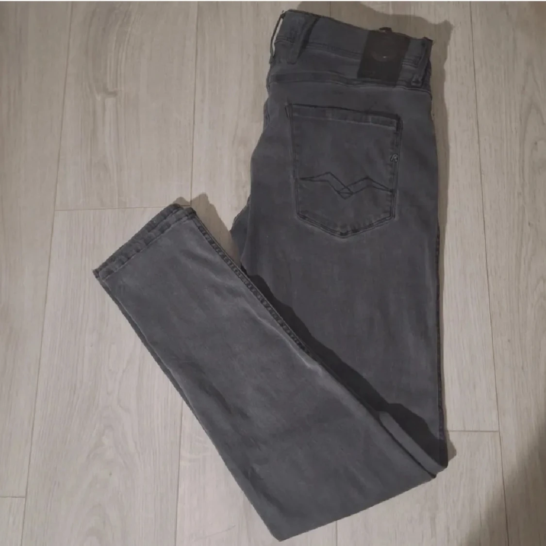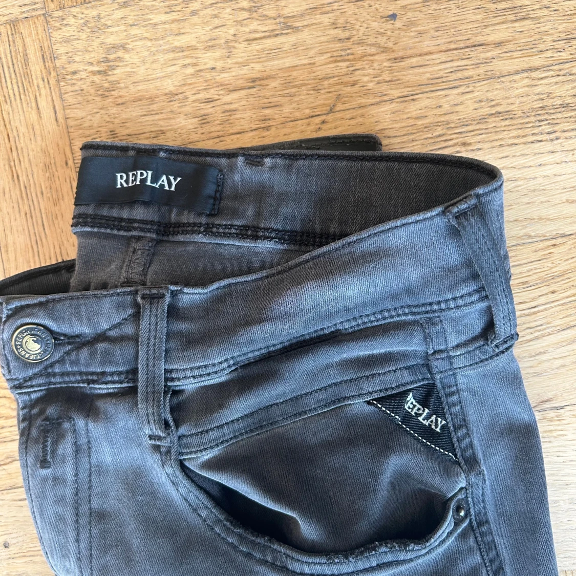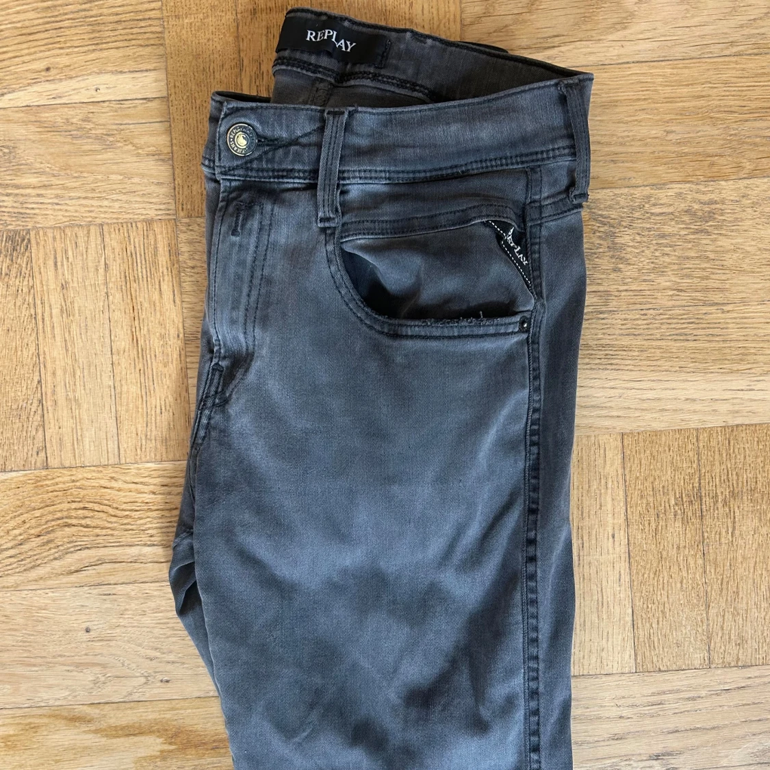 Snygga grå jeans från Replay med klassisk femficksdesign och skinny passform. Jeansen har svarta detaljer vid fickorna och Replay-logga på både linning och myntficka. Tillverkade i stretchigt jeanstyg för en bekväm känsla.