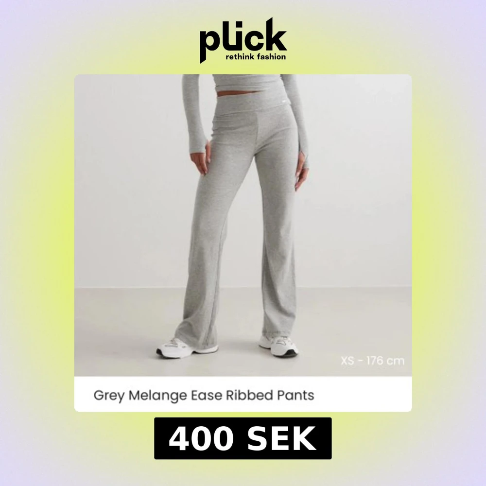 Supermjuka och ribbade byxor från Aim'n i ljusgrå melange. Låg midja och utsvängda ben ger en chill och trendig vibe. Materialet är en mix av bomull, polyester och elastan för maximal komfort. Perfekta för en avslappnad look eller till träning. Nypris 499 kr. Aldrig använda. Säljer pga att de var för korta i längden. Insidan av benet är 80cm.