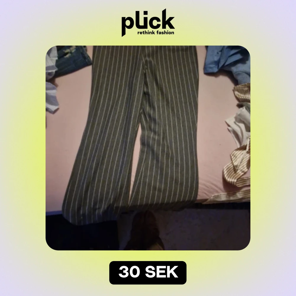 Säljer ett par snygga gråa byxor med vita ränder från H&M Divided. De har en loose passform och är perfekta för både vardag och fest. Byxorna är i storlek S och är tillverkade i ett mjukt och bekvämt material.