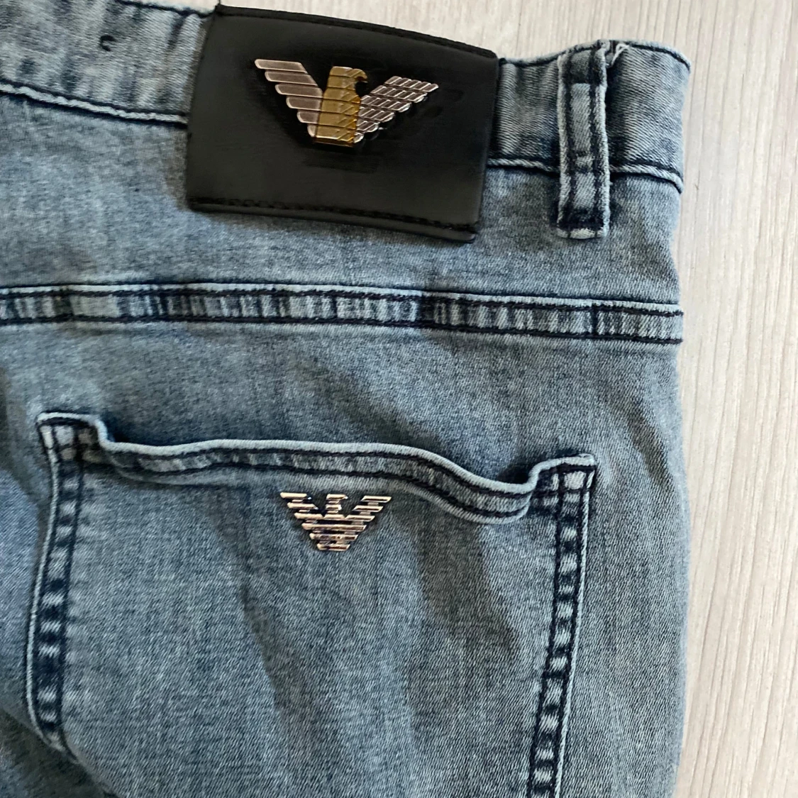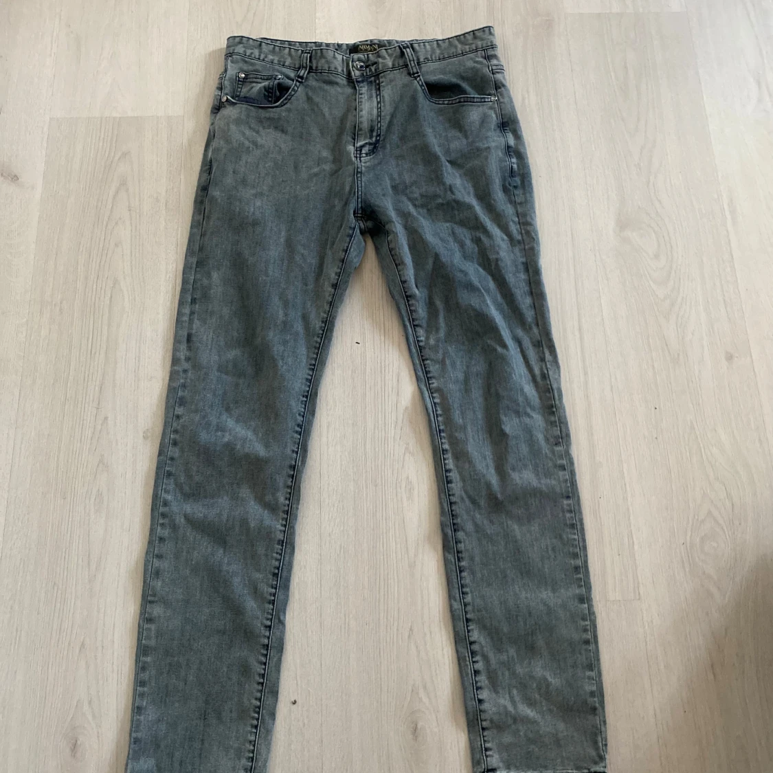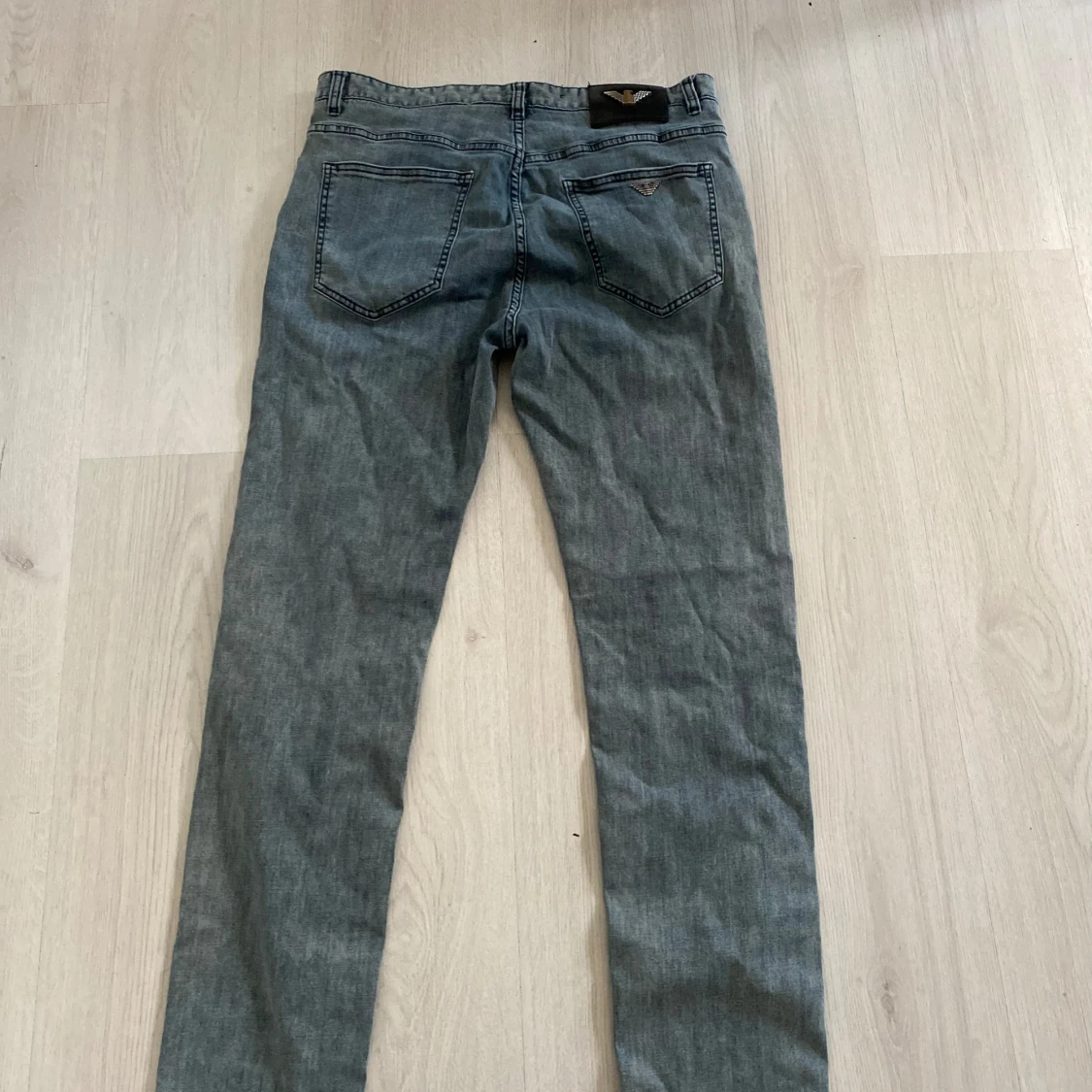 Snygga grå jeans från Armani med klassisk femficksdesign och silverfärgade detaljer. Byxorna har smal passform och ikoniska Armani-loggor på bakfickan och knappen. Perfekta för dig som gillar stilrena och exklusiva jeans med en modern vibe.