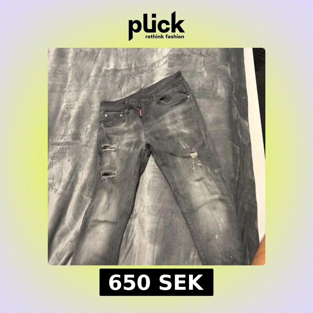 Snygga grå jeans från Dsquared2 med slitna detaljer och trasiga partier på framsidan. Modellen är slim fit med klassisk femficksdesign och coola färgstänk. Märkespatch bak och röd Dsquared2-tag vid fickan. Perfekt för dig som gillar streetstyle.
