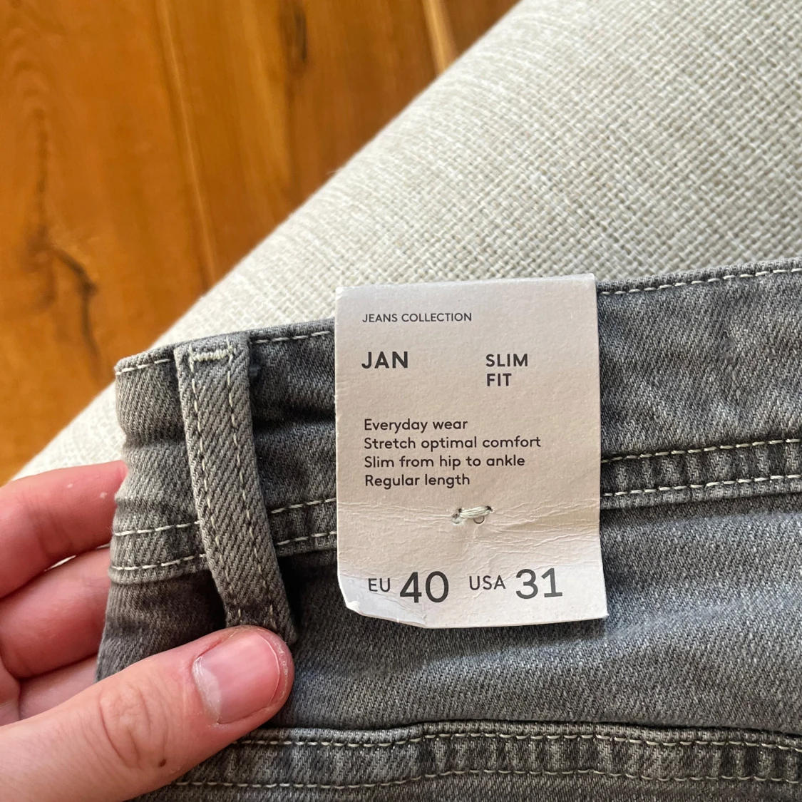 Snygga grå jeans från Jan i slim fit-modell. Jeansen har klassisk femficksdesign, normal midja och är tillverkade i stretchigt denim för extra komfort.