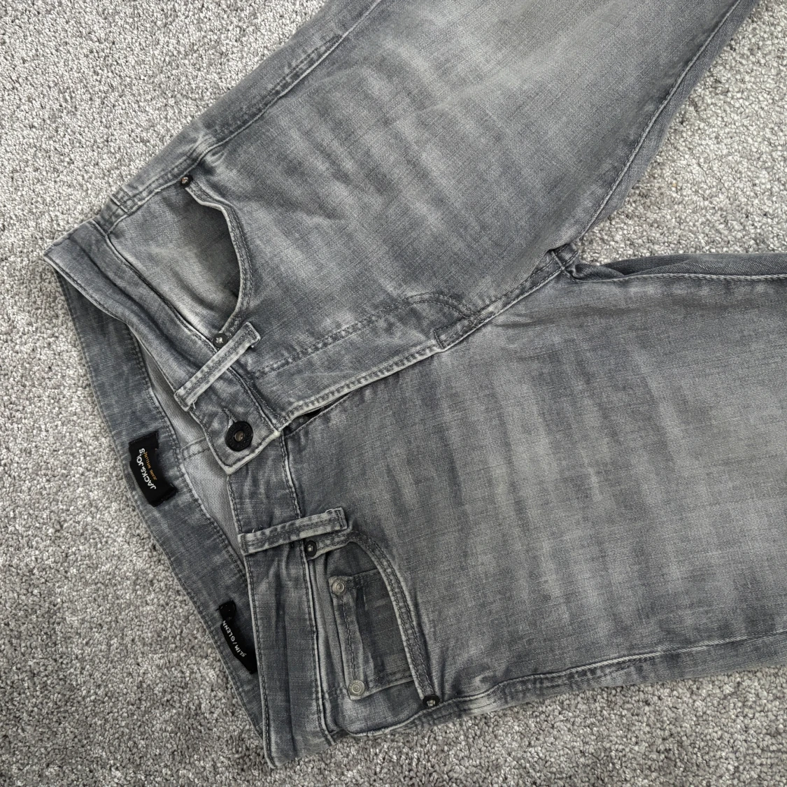 Helt nya använda 1 gång!❗️Snygga grå jeans från Jack & Jones i modellen Slim Glenn. Jeansen har en slim passform, klassisk femficksdesign och är tillverkade i denimtyg. Perfekta för dig som gillar en smalare siluett och en modern look.