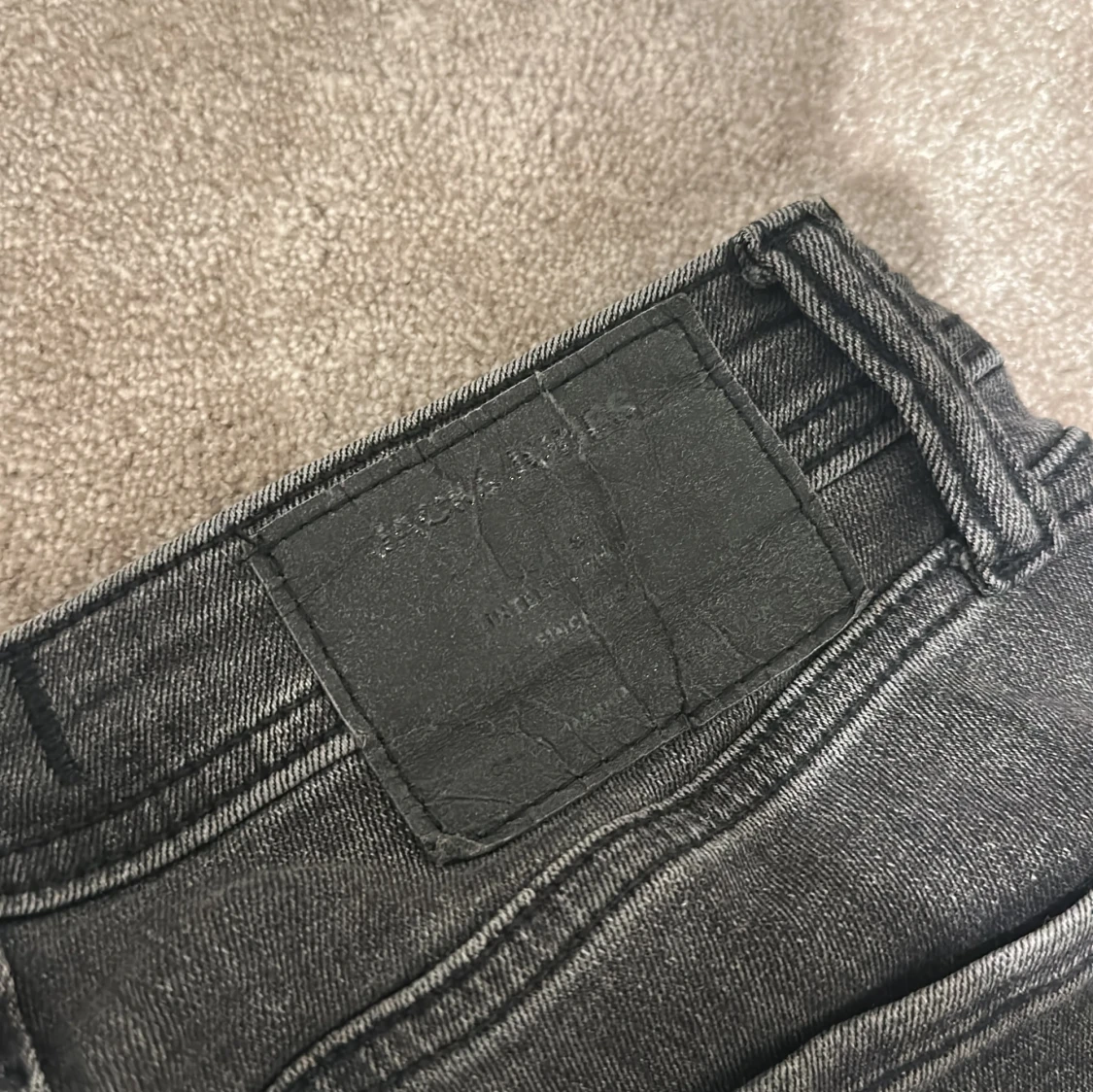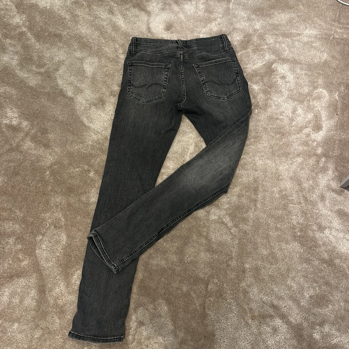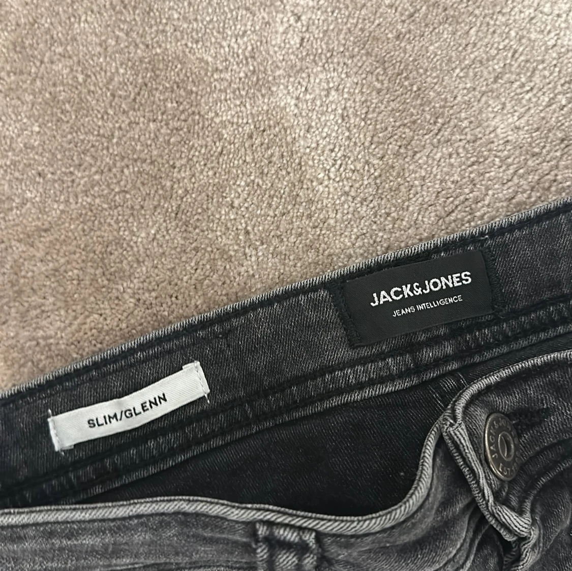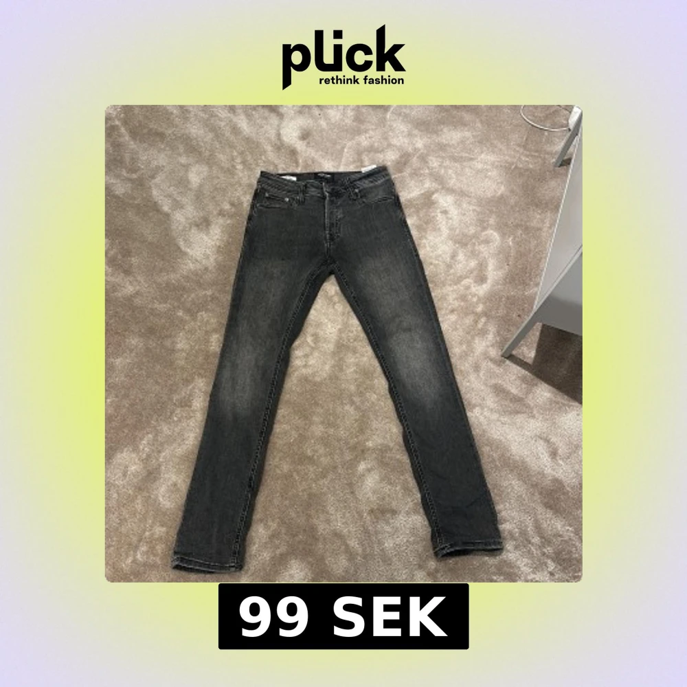 Skick: 8/10. Jag säljer mina snygga grå jeans från Jack & Jones i modellen Slim/Glenn. Jeansen har en smal passform, klassisk femficksdesign och är tillverkade i mjukt denimtyg. Perfekta för dig som gillar en stilren och modern look.