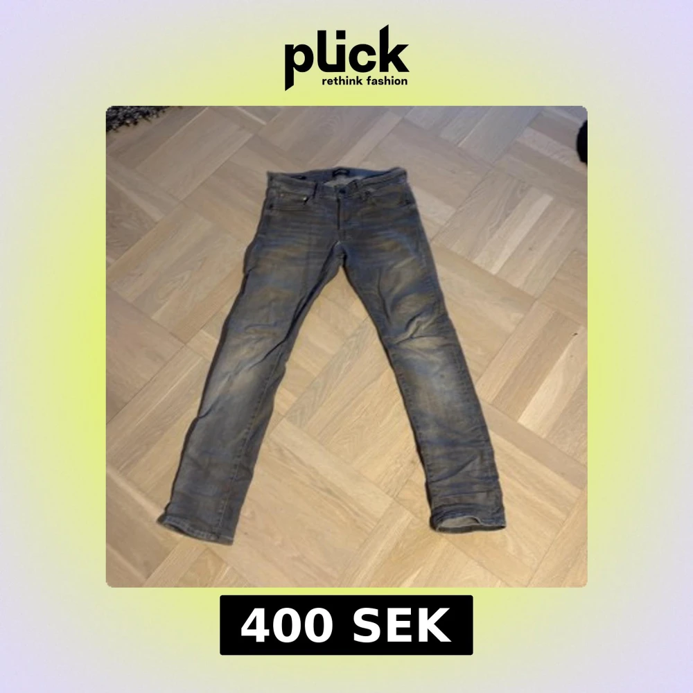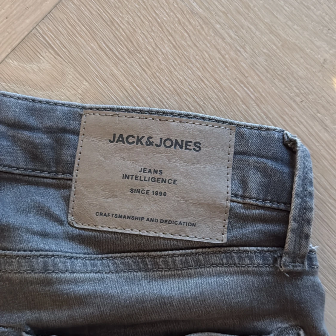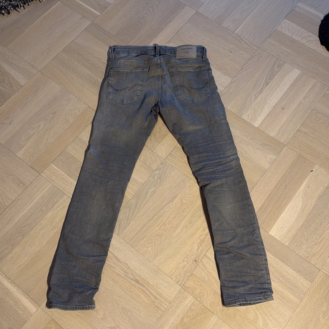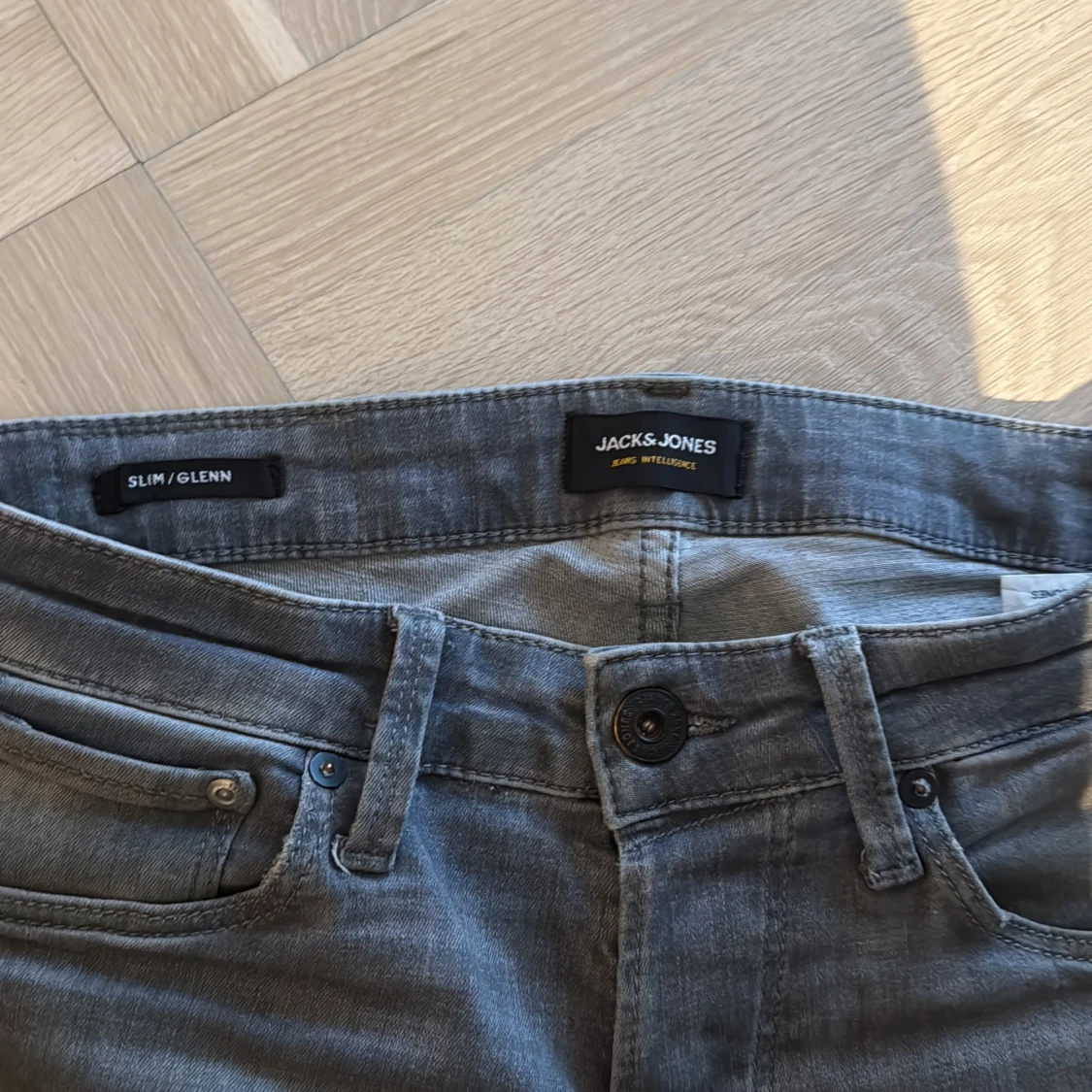 Slim Glenn jeans från Jack & Jones i en grå färg, passform är slim fit klassisk femficksdesign och normal midja. Tillverkade i mjukt denimtyg med stretch för extra komfort. Perfekta för dig som gillar en stilren och modern look. Liten defekt man ser på sista bilden som syns inte när man har på sig de. Pris kan diskuteras 🤗