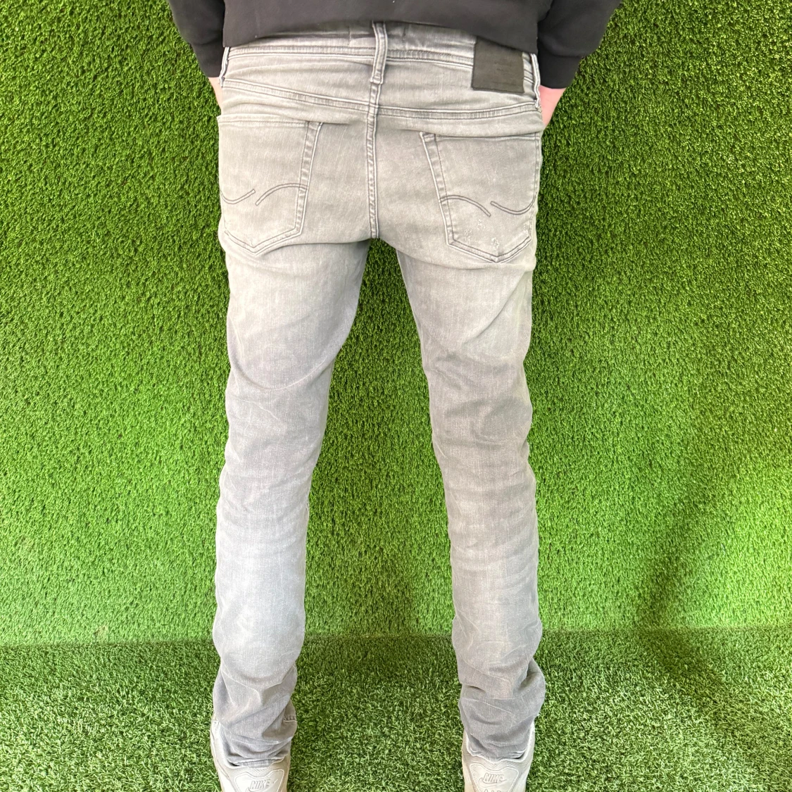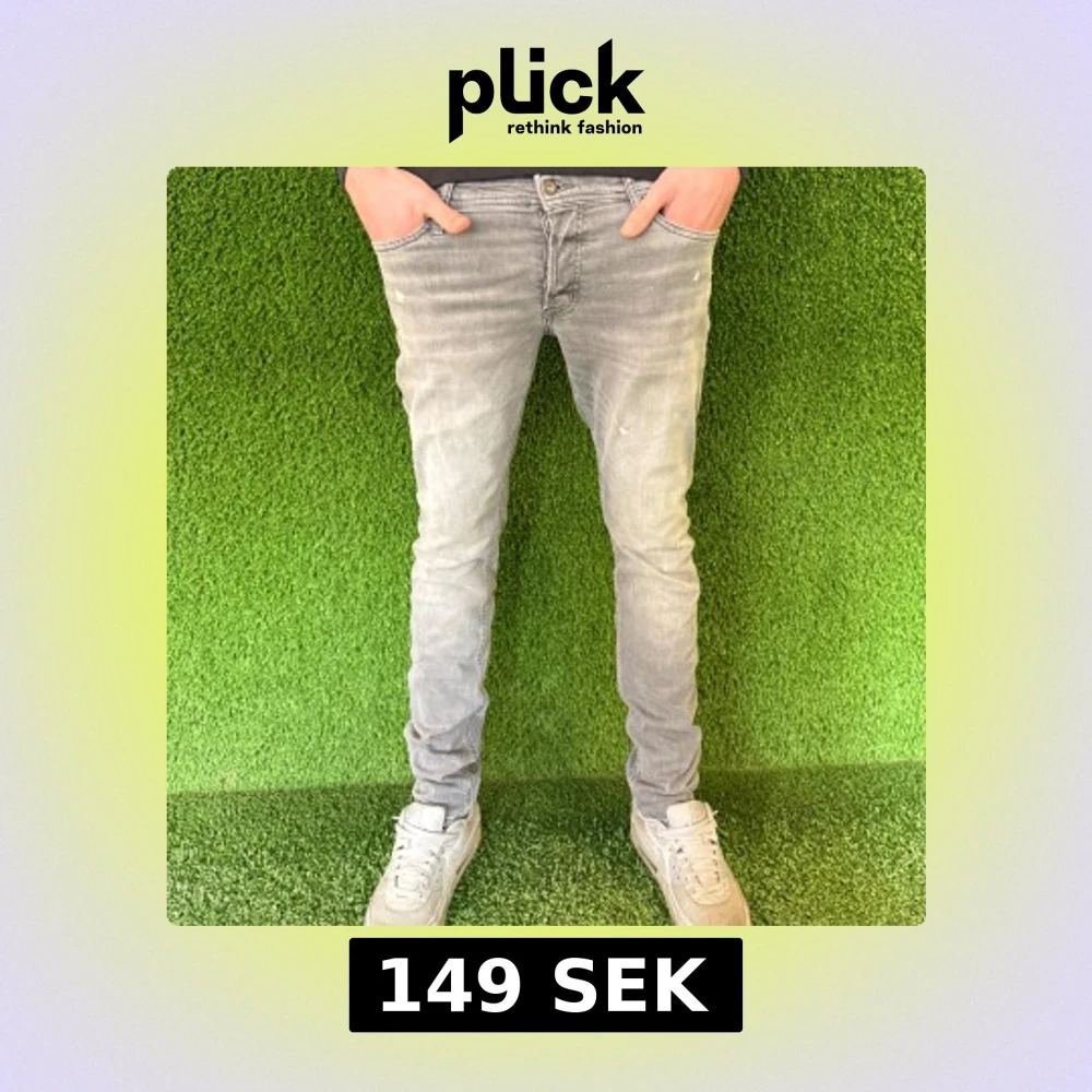 Snygga grå skinny jeans med en modern passform. De har en klassisk femficksdesign och är perfekta för en stilren look. Dragkedja och knapp framtill.