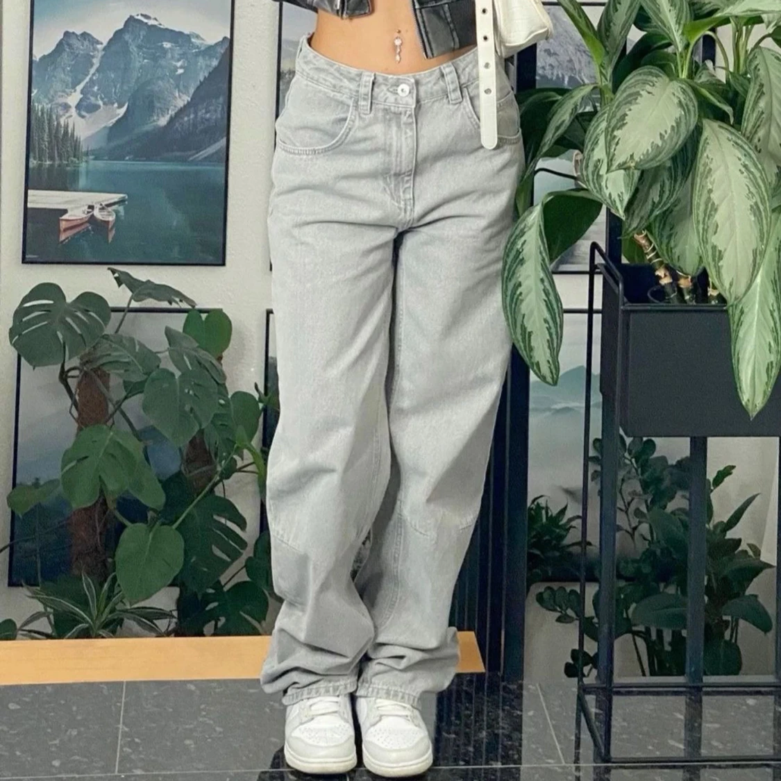 grå straight leg jeans
