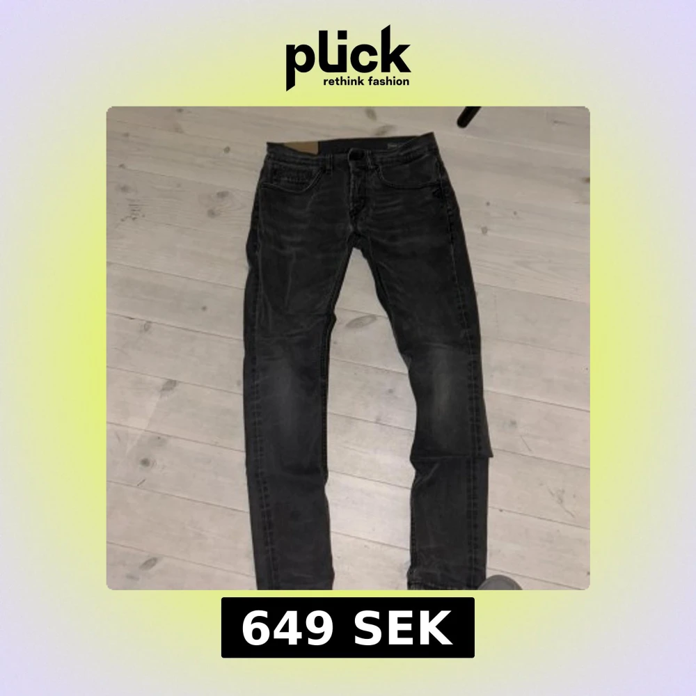 Snygga grå jeans från Dondup i skinny fit-modell. Jeansen har klassisk femficksdesign, svarta detaljer på bakfickorna och en diskret logga. Tillverkade i mjukt bomullstyg med lite stretch för extra komfort. Perfekta för dig som gillar en smal siluett.