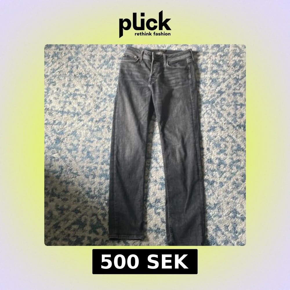Säljer ett par grå jeans från Jack & Jones, modell Tapered/Mike. Jeansen har en snygg tvättad look, knäppning med knappar och klassisk femficksdesign. Passformen är tapered vilket ger en modern och avslappnad stil. HelJag nya köptes för 900kr, säljer pga att de är för små