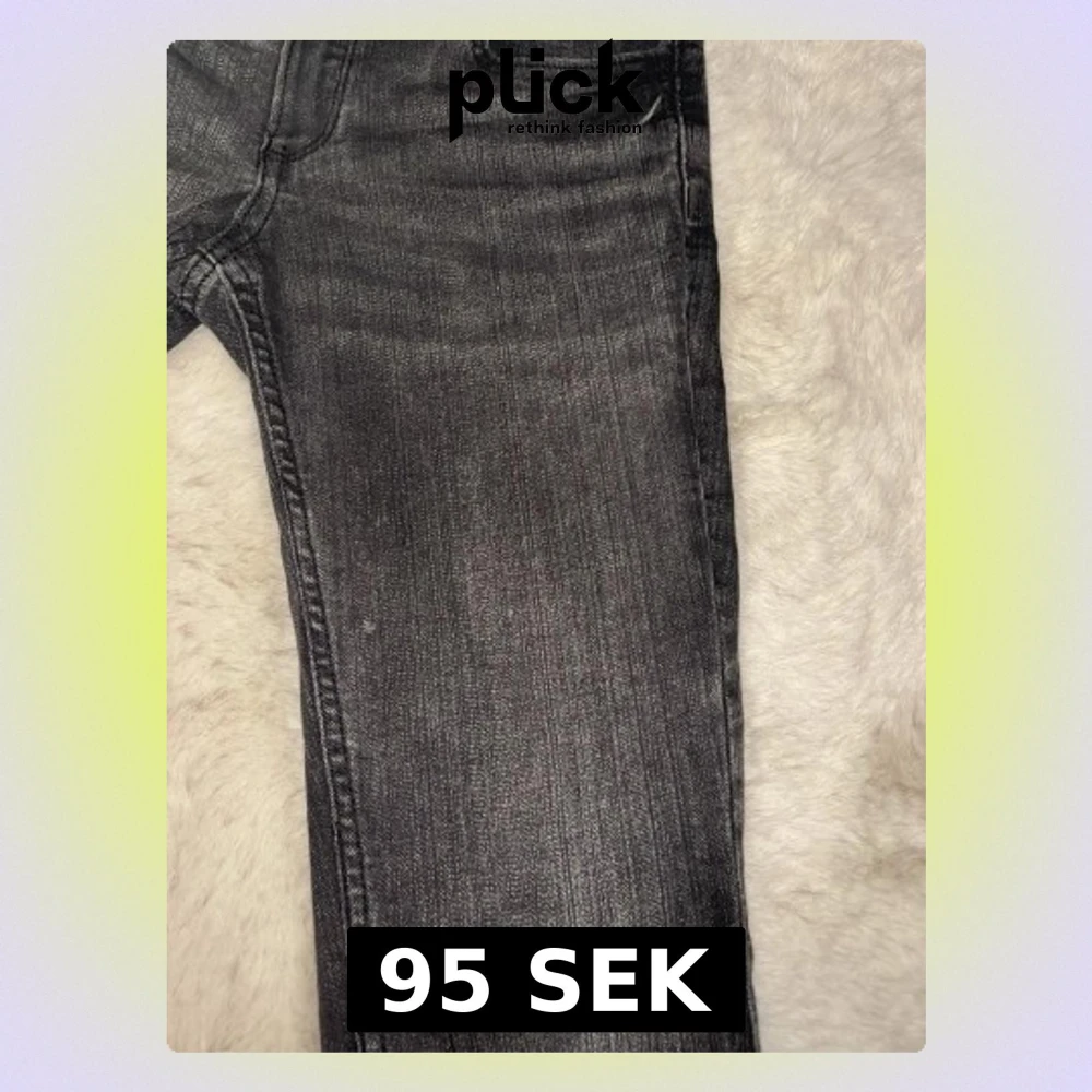 Säljer ett par grå utsvängda jeans med tvättad effekt och snygga detaljer vid fickorna. Jeansen har en klassisk femficksmodell och silverfärgade knappar. Köpte dem för 279 men säljer för 95 då de har lite fläckar osv💕