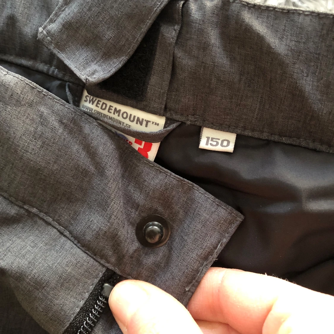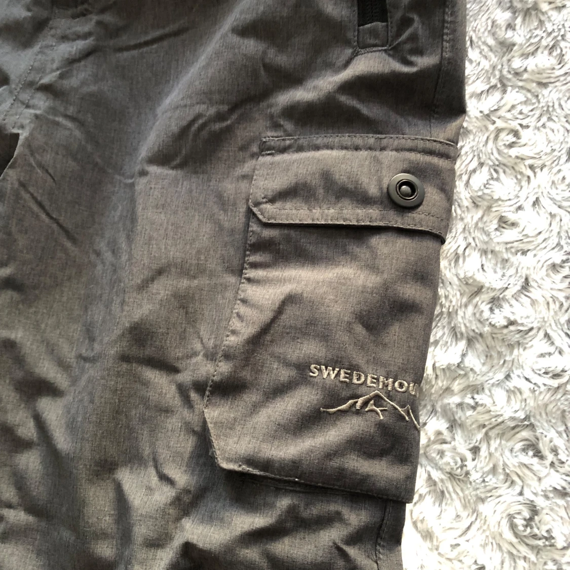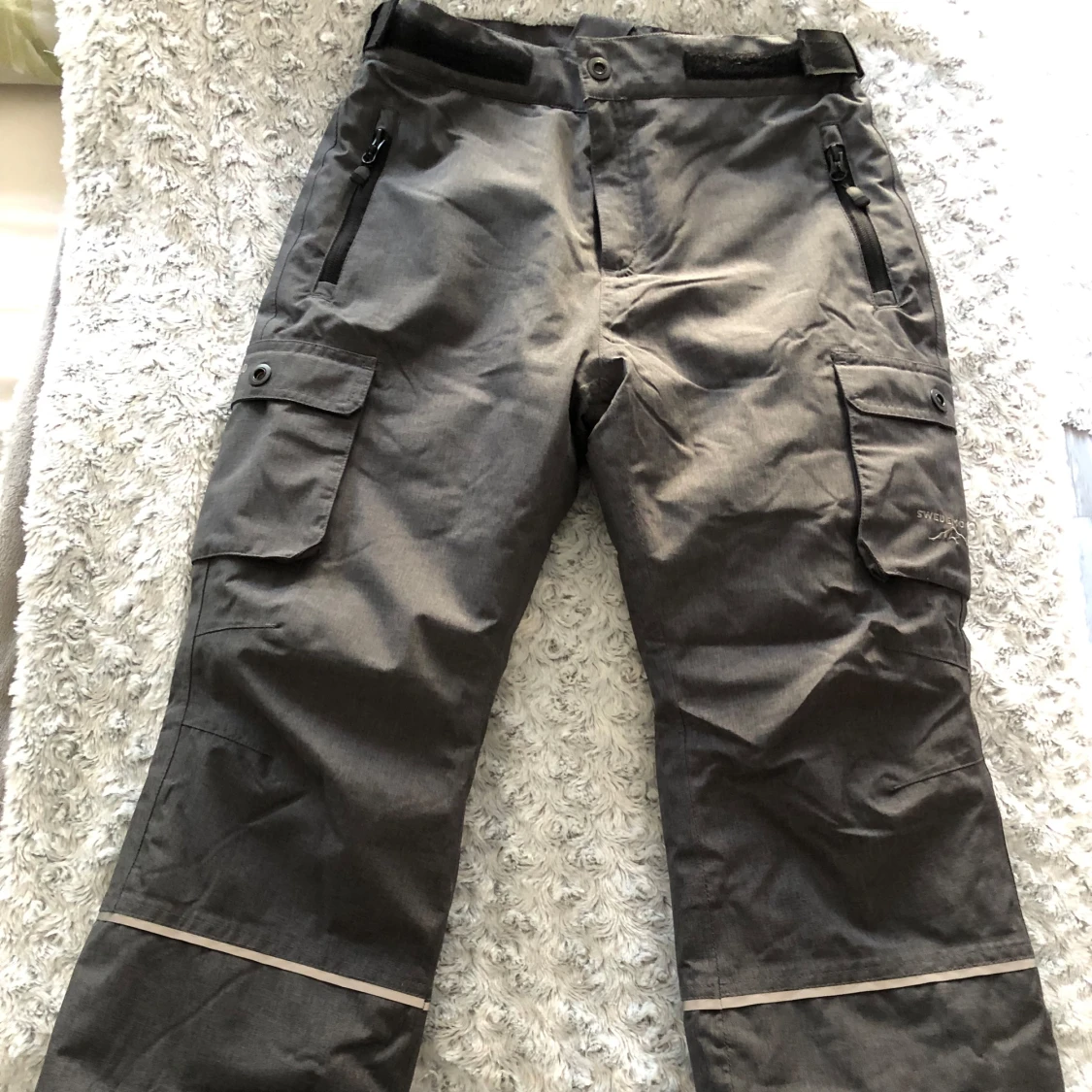 Säljer ett par grå överdragsbyxor från Swedemount med praktiska fickor och knappar. Byxorna har en justerbar midja och dragkedjor vid fickorna. Perfekta för utomhusaktiviteter och äventyr.Finns hängslen till med. Använda endast 1 gång!
