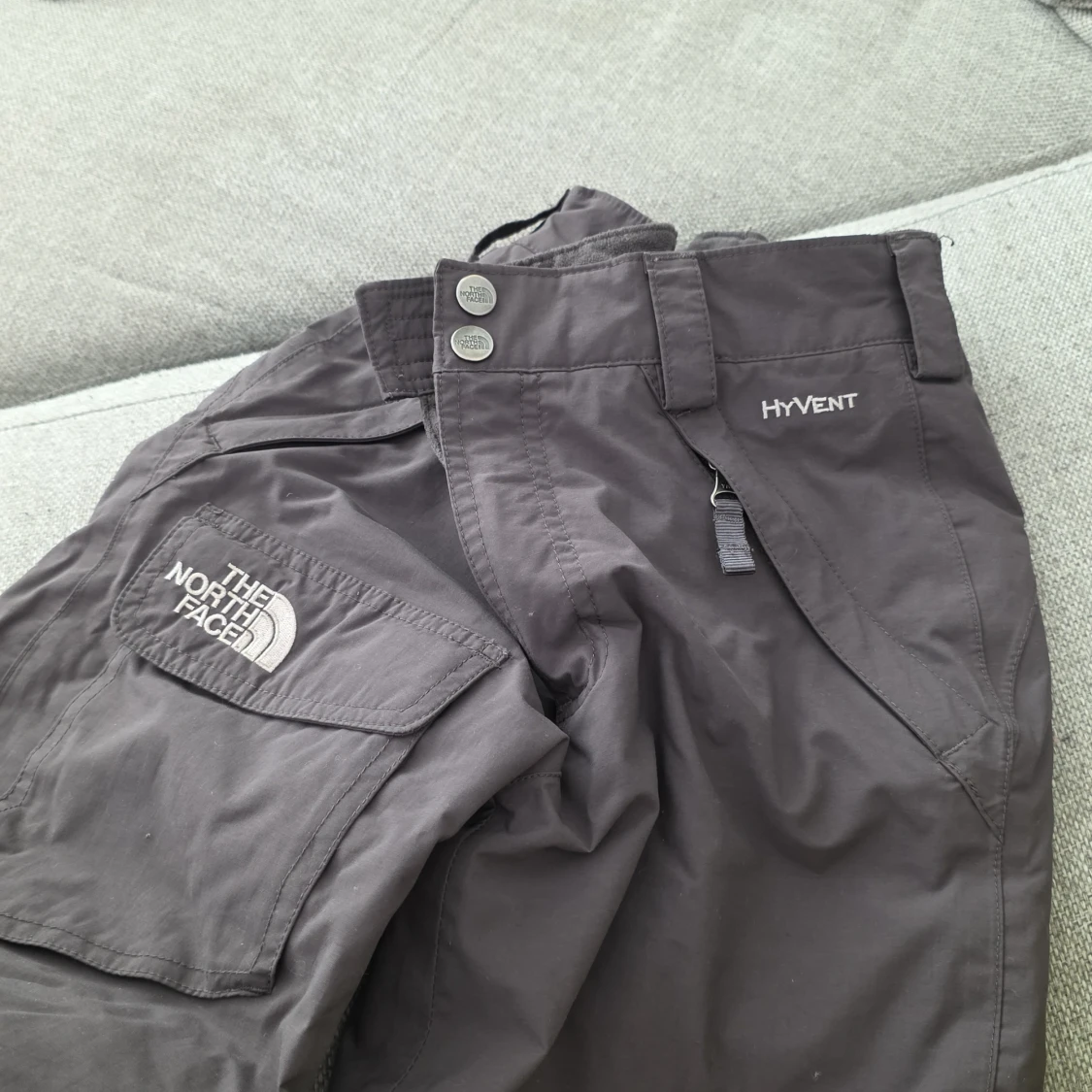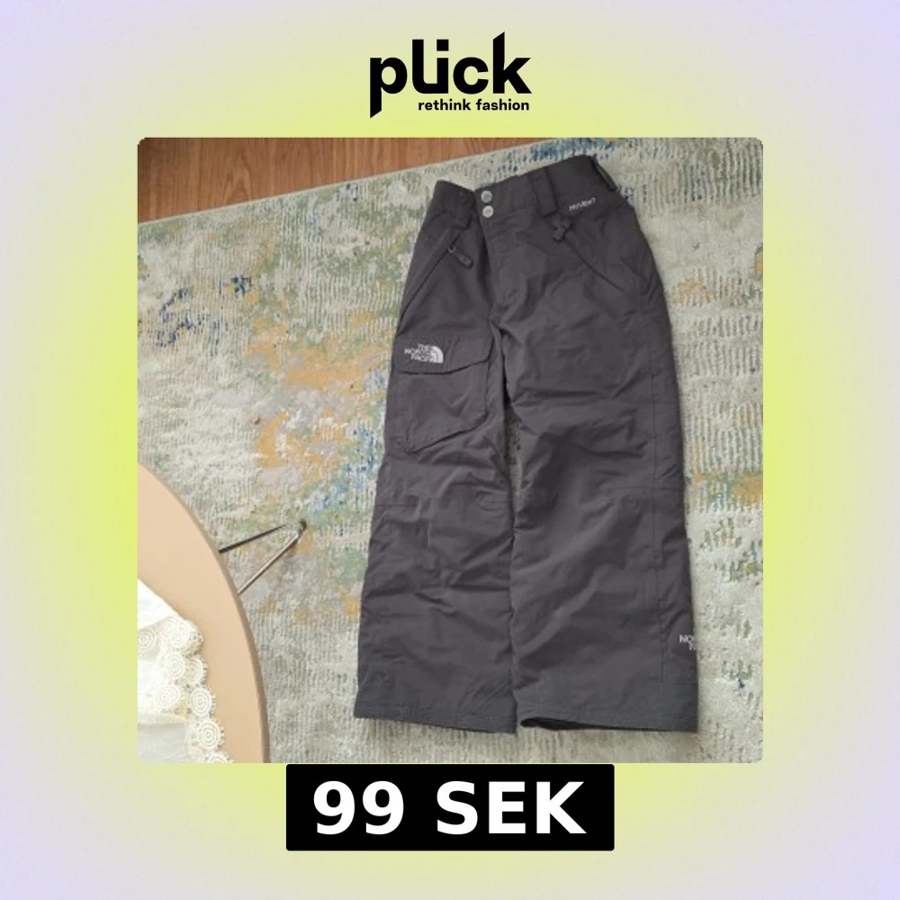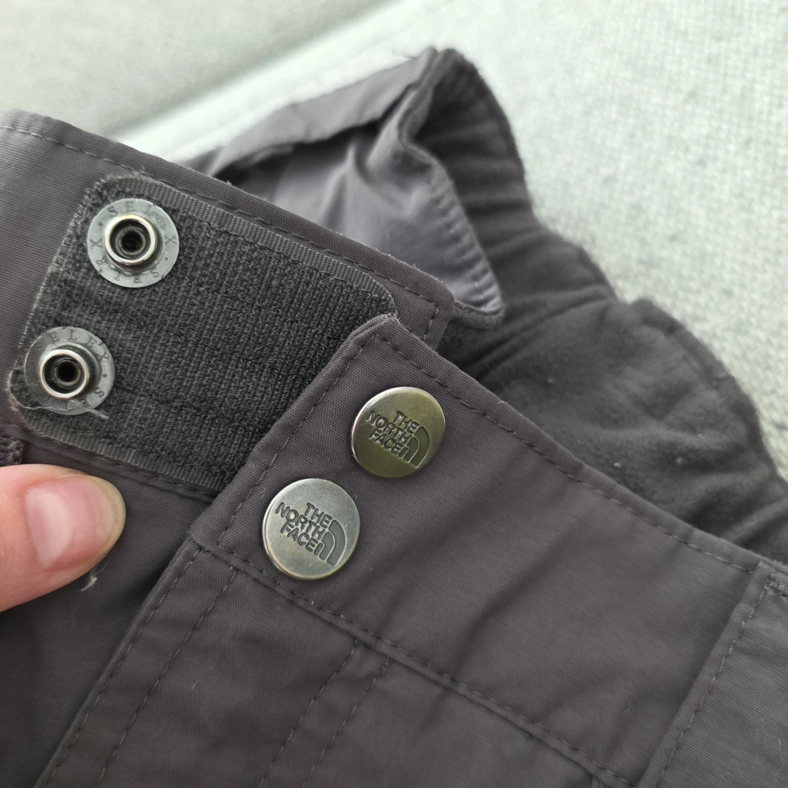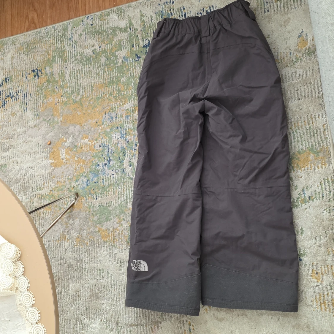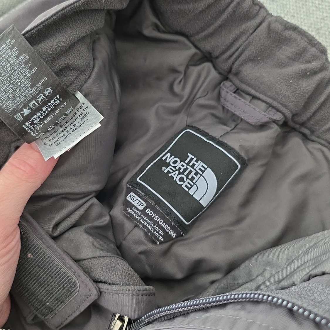 Grå täckbyxor från The North Face med bred passform och praktiska fickor. Byxorna har justerbar midja med kardborre och tryckknappar, samt fleecefoder på insidan för extra värme. Perfekta för kalla dagar och vinteraktiviteter. För pojke barn 5 år