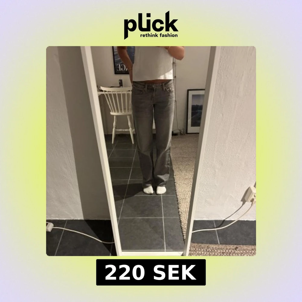 Säljer ett par grå jeans med klassisk straight fit och låg midja från weekday i modellen arrow. Använda ett fåtal gånger och passar perfekt till dig som är runt 165 lång. Hör av dig för mer bilder!