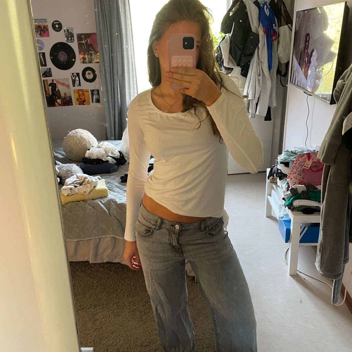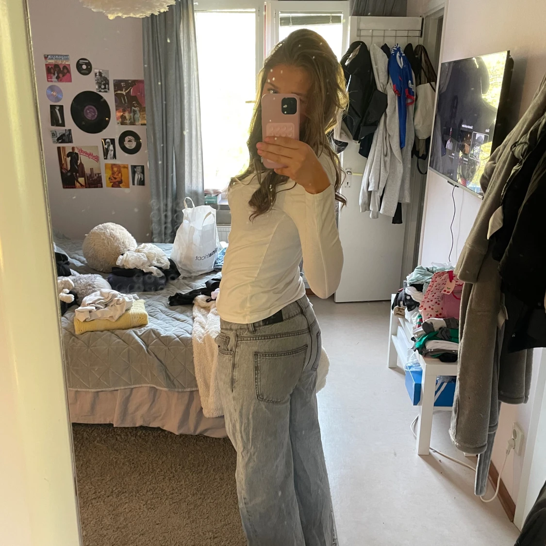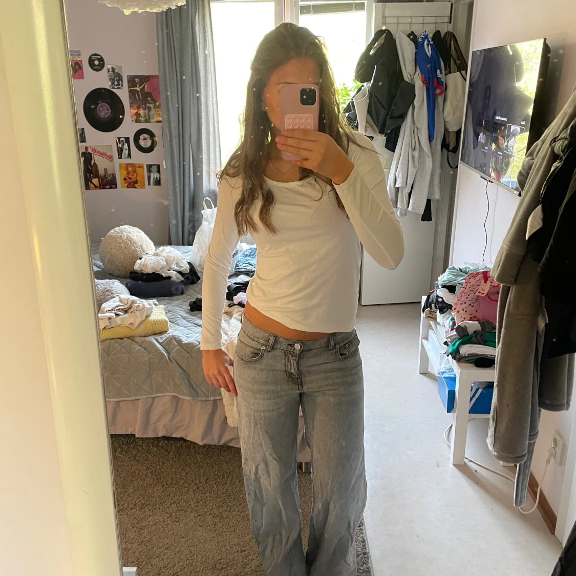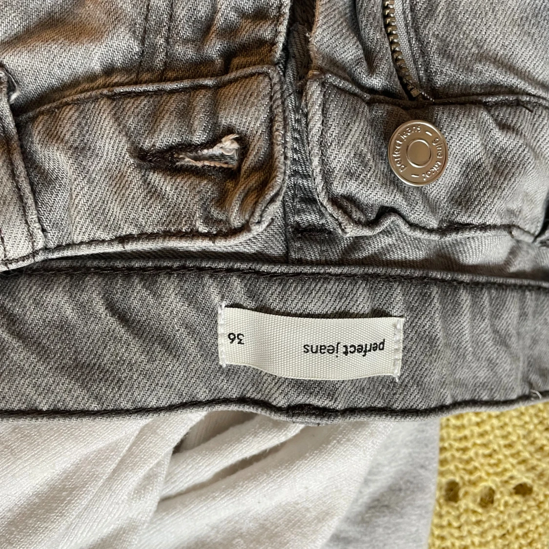 Säljer ett par gråa jeans från Perfect Jeans i storlek 36. Modellen har låg midja och breda ben för en chill och trendig look. Jeansen är tillverkade i klassiskt denim och har fem fickor samt knapp och dragkedja framtill. Jag är 167