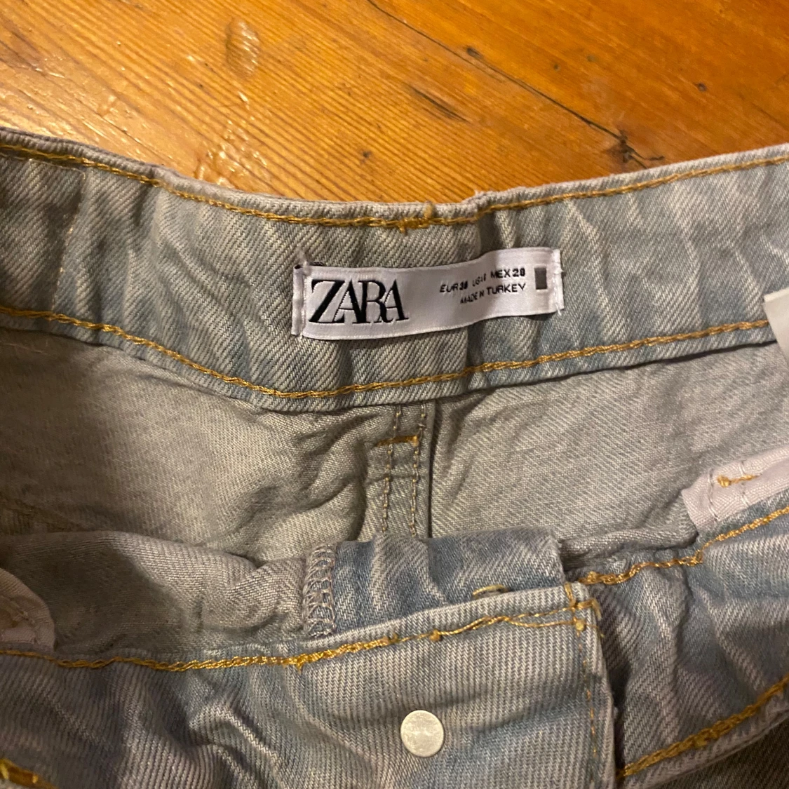 Säljer ett par ljusblå wide jeans från Zara. Köpta second hand men är i mycket bra skick!!💞
