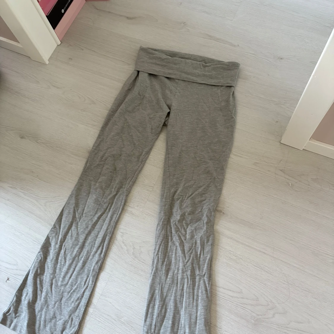 Snygga yoga pants med bootcut och bred, vikbar midja. Byxorna har en mjuk och stretchig känsla, perfekta för chill eller träning. Passformen är loose och de har en enkel, stilren look utan detaljer eller mönster. Använd väldigt fåtal gånger, ca 2-3 ggr