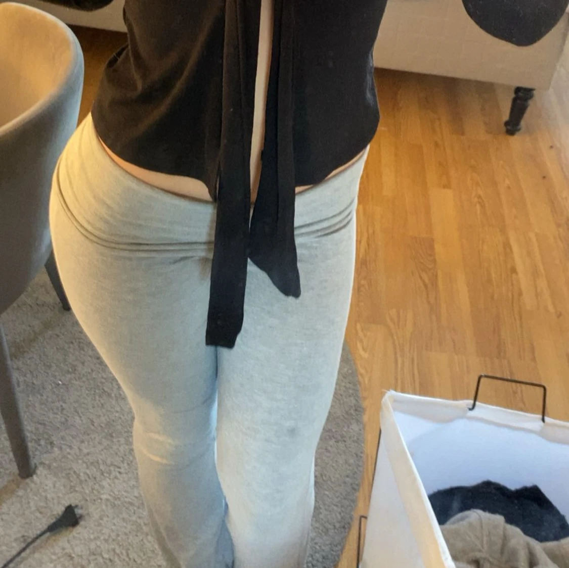 Säljer ett par ljusgrå mjukisbyxor från Gina Tricot i storlek XS. Byxorna har låg midja och är i mjukt bomullsmaterial med en tight passform. Perfekta för chill dagar eller när du vill vara bekväm men ändå se snygg ut.