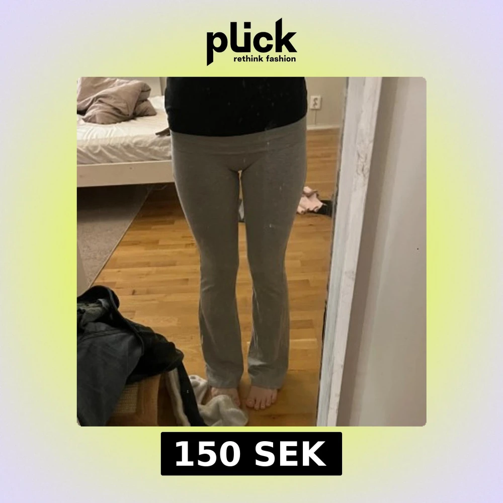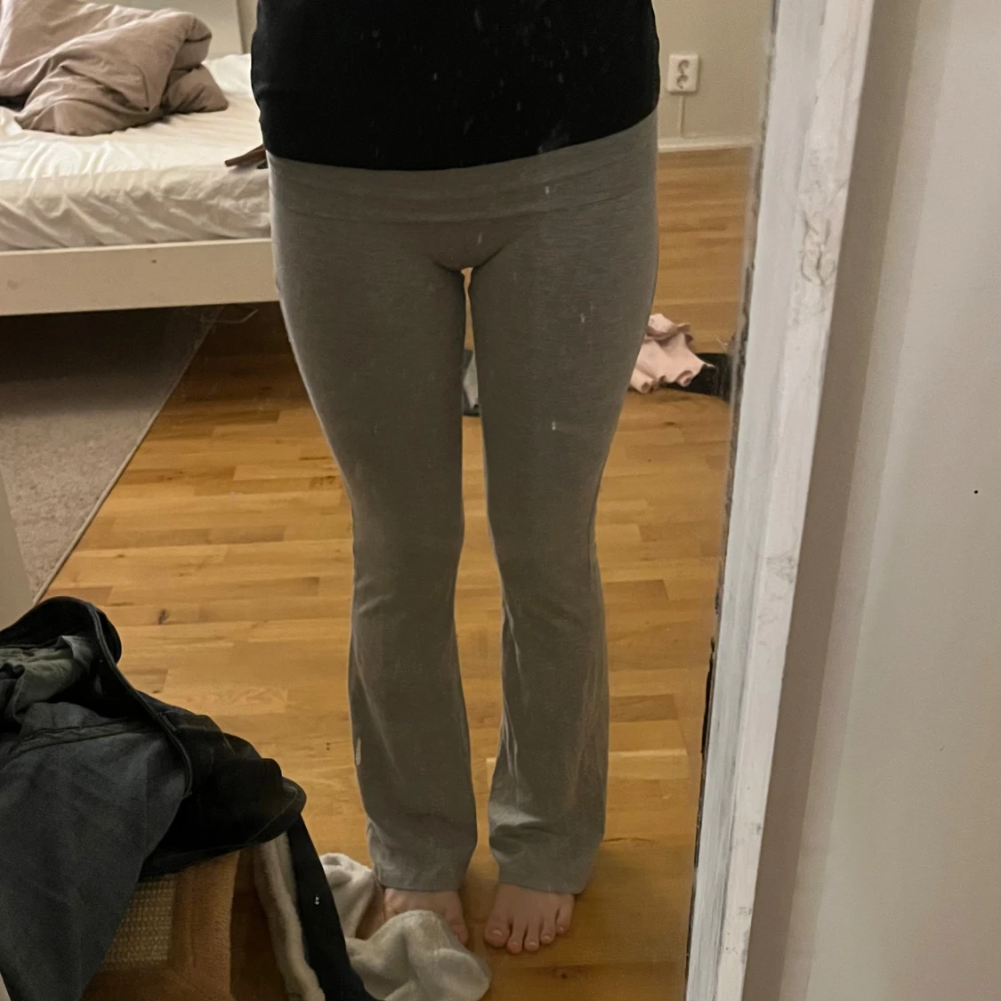 Grå mjukisbyxor från Gina Tricot i storlek XXS. Byxorna har bootcut-modell med lätt utsvängda ben.