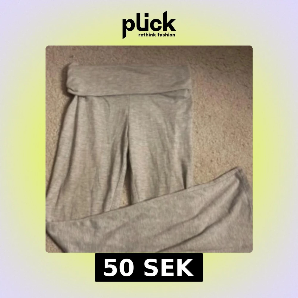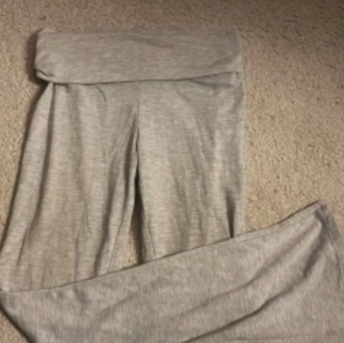 Säljer ett par grå yougha pants med bred, vikt midja. Byxorna är tillverkade i mjukt bomullsmaterial, perfekta för chill dagar. Färgen är ljusgrå och modellen är rak i benen och botcut. Säljer då jag köpte fel storlek