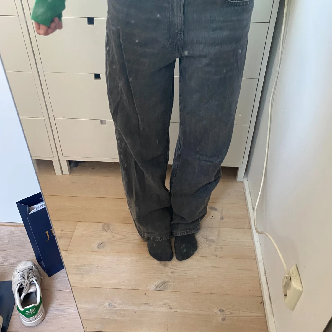Säljer ett par gråa jeans med baggy passform och normal midja. Köpta för 500kr från Gina tricot