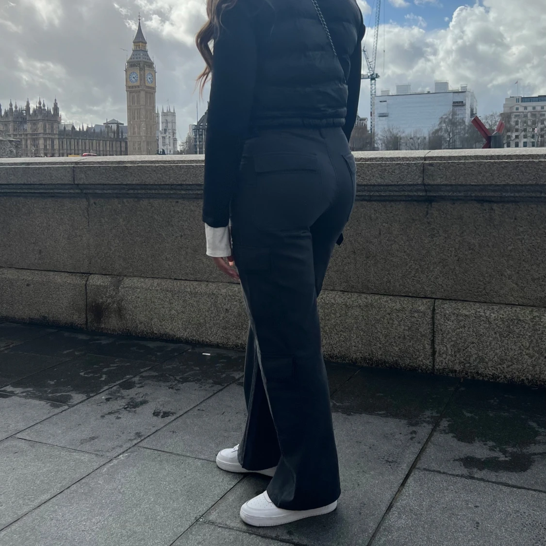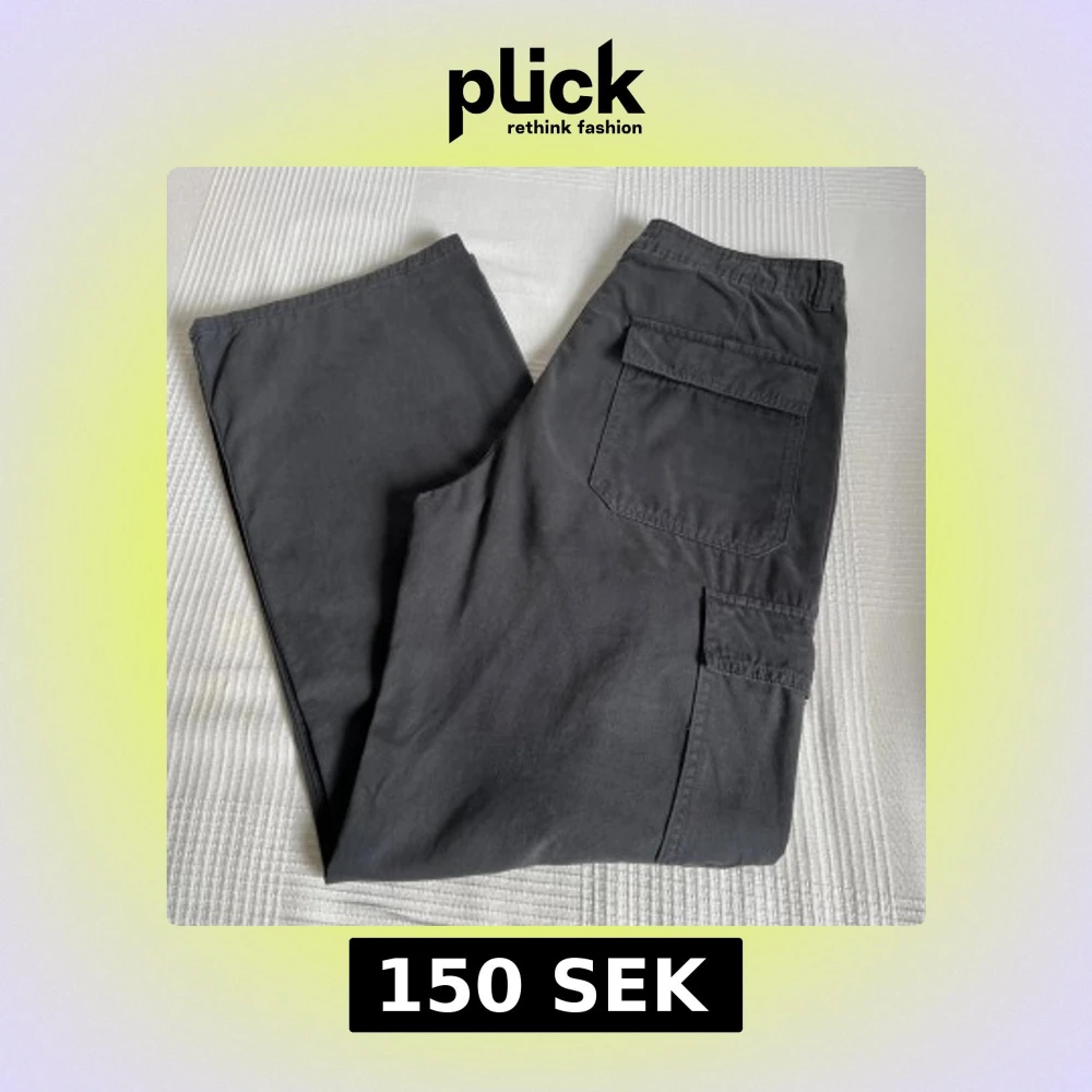 Ett par cargobyxor i en urtvättad grå färg från Zara. Byxorna har en rak modell och har fickor både bak och på sidorna.