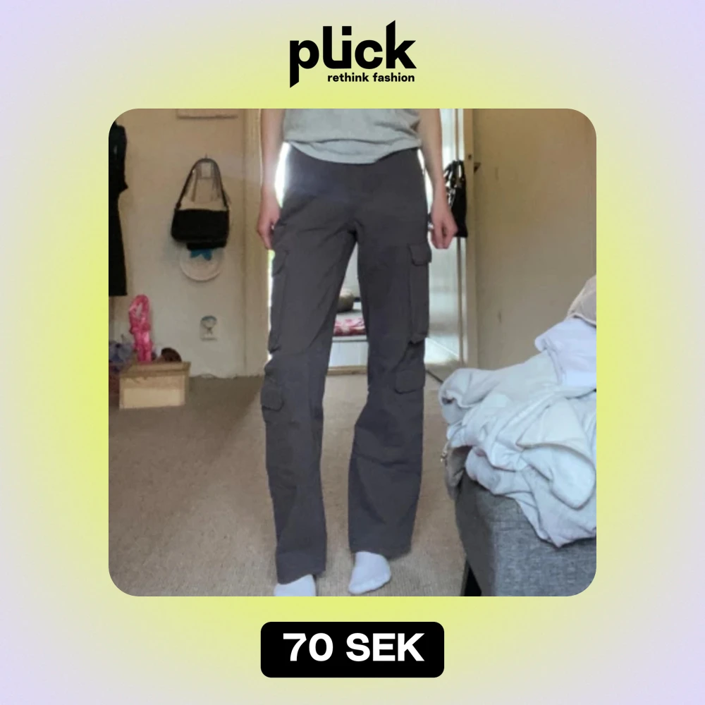 Säljer ett par mjuka och sköna gråa cargobyxor från Bershka☺️Strl. 34, har snören i midjan så kan passa andra storlekar oxå💗Alla fickor fungerar förutom dom där bak (är inga fickor)!Använda ca 2 gånger & är felfri🙌🏻Älskar dessa men används inte längre🥲