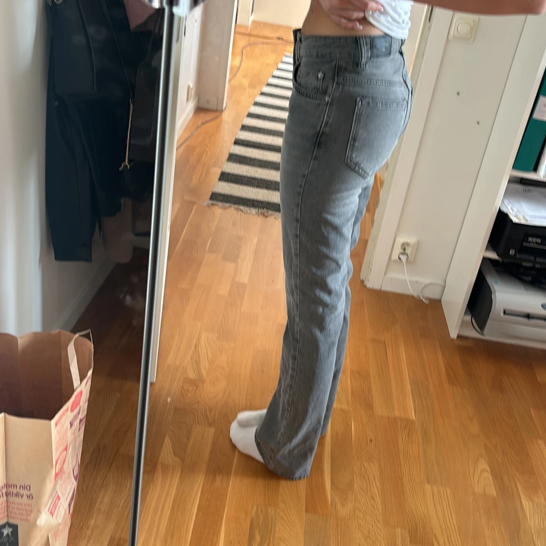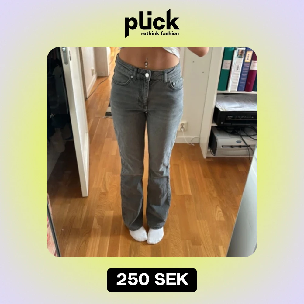 Midwaist gråa jenas Flare från Gina tricot. Byxorna har användts några få gånger. Storlek 34