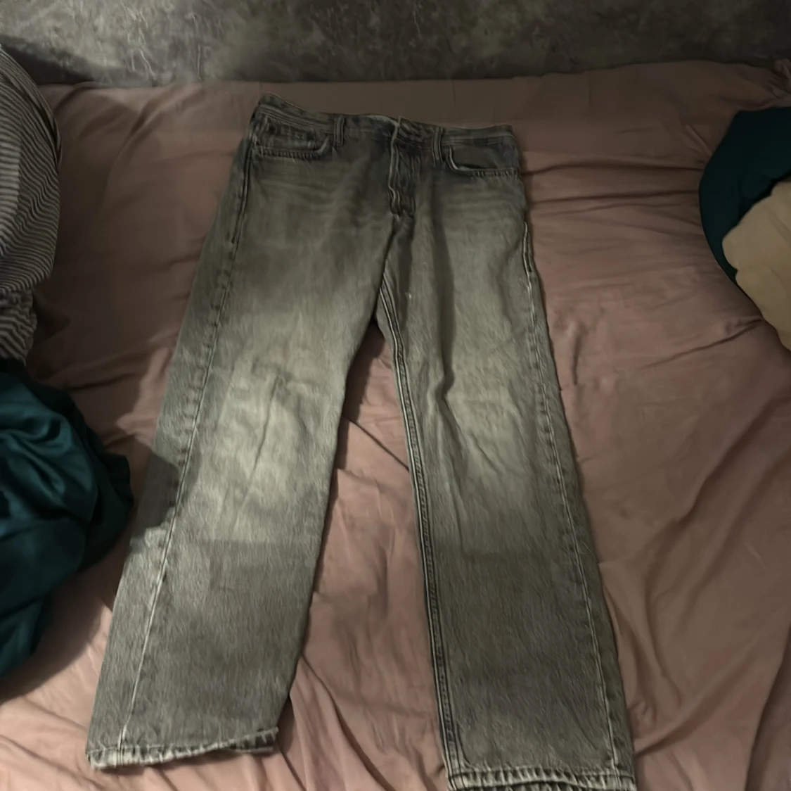 Säljer ett par ljusgråa jack n Jones jeans i 8/10 skick ganska använda men fungerar bra. Storlek w28 L30