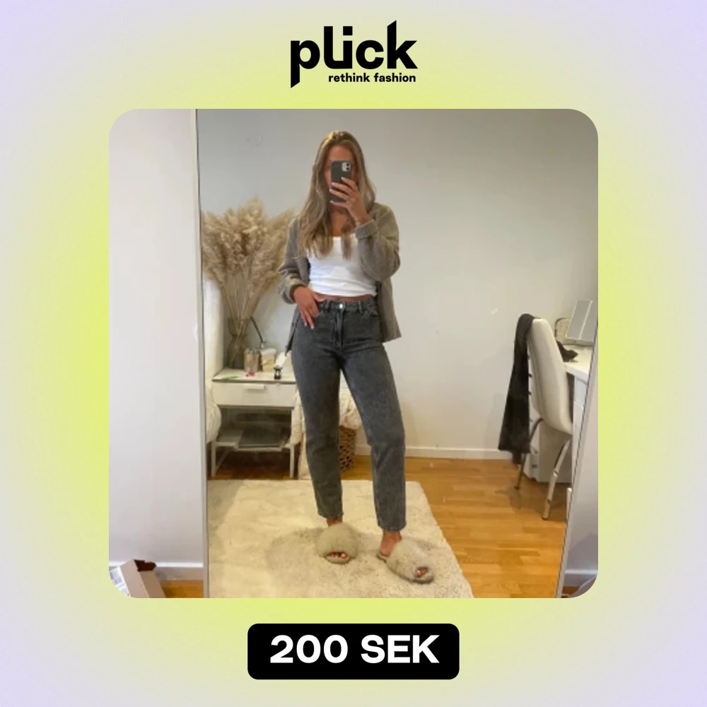 Gråa kroppade jeans med hög midja.