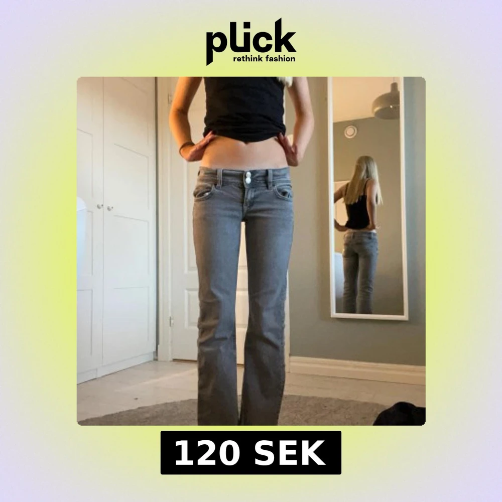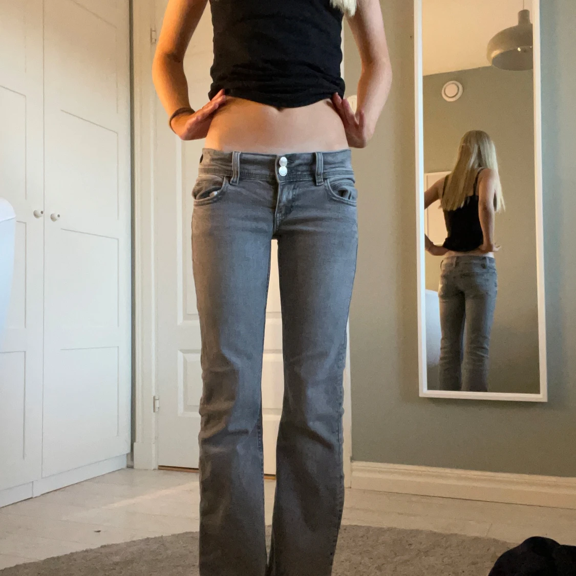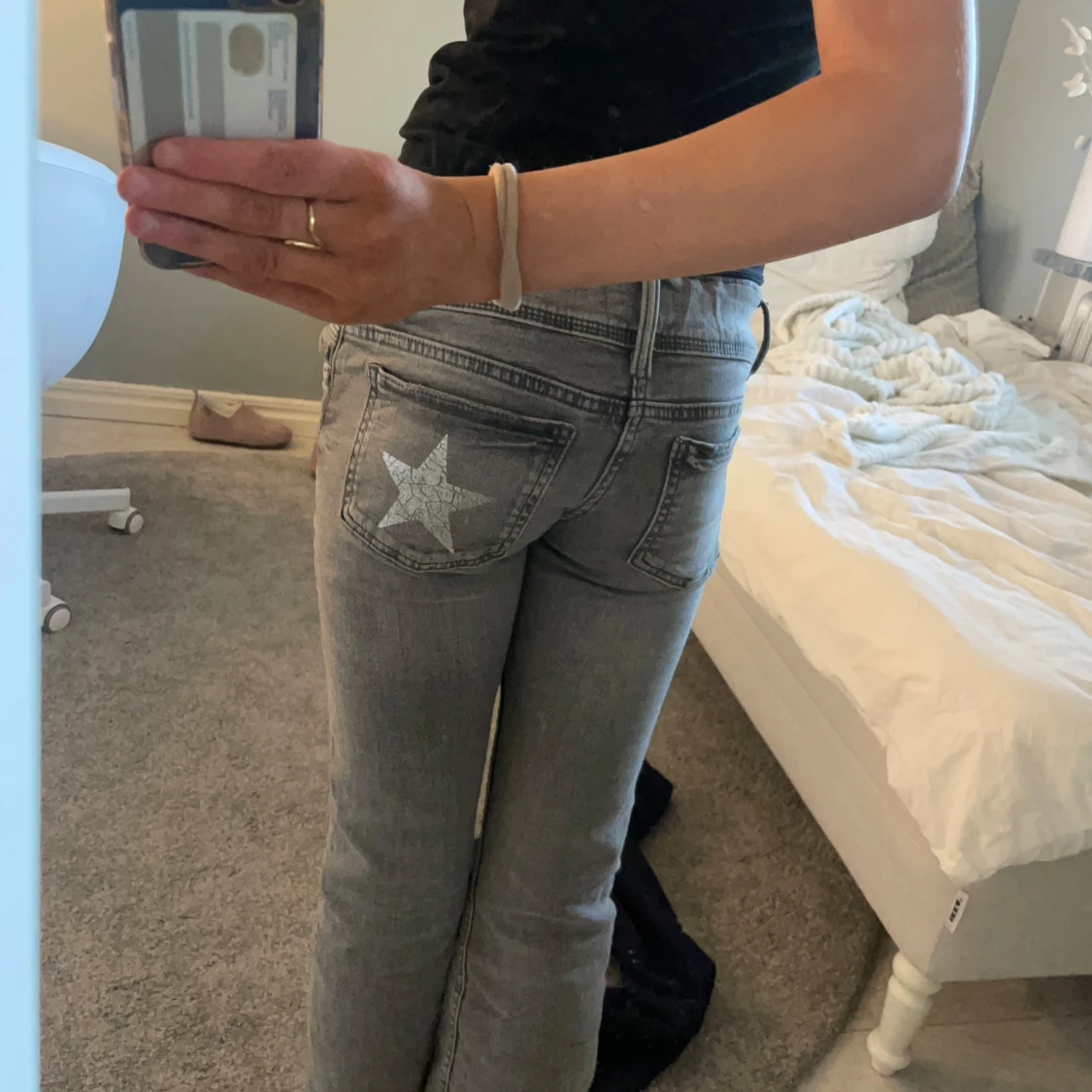 Gina tricot jeans i storlek 146!! De passar mig som har xss-xs i byxor, de har en stjärna på ena fickan där bak🤍