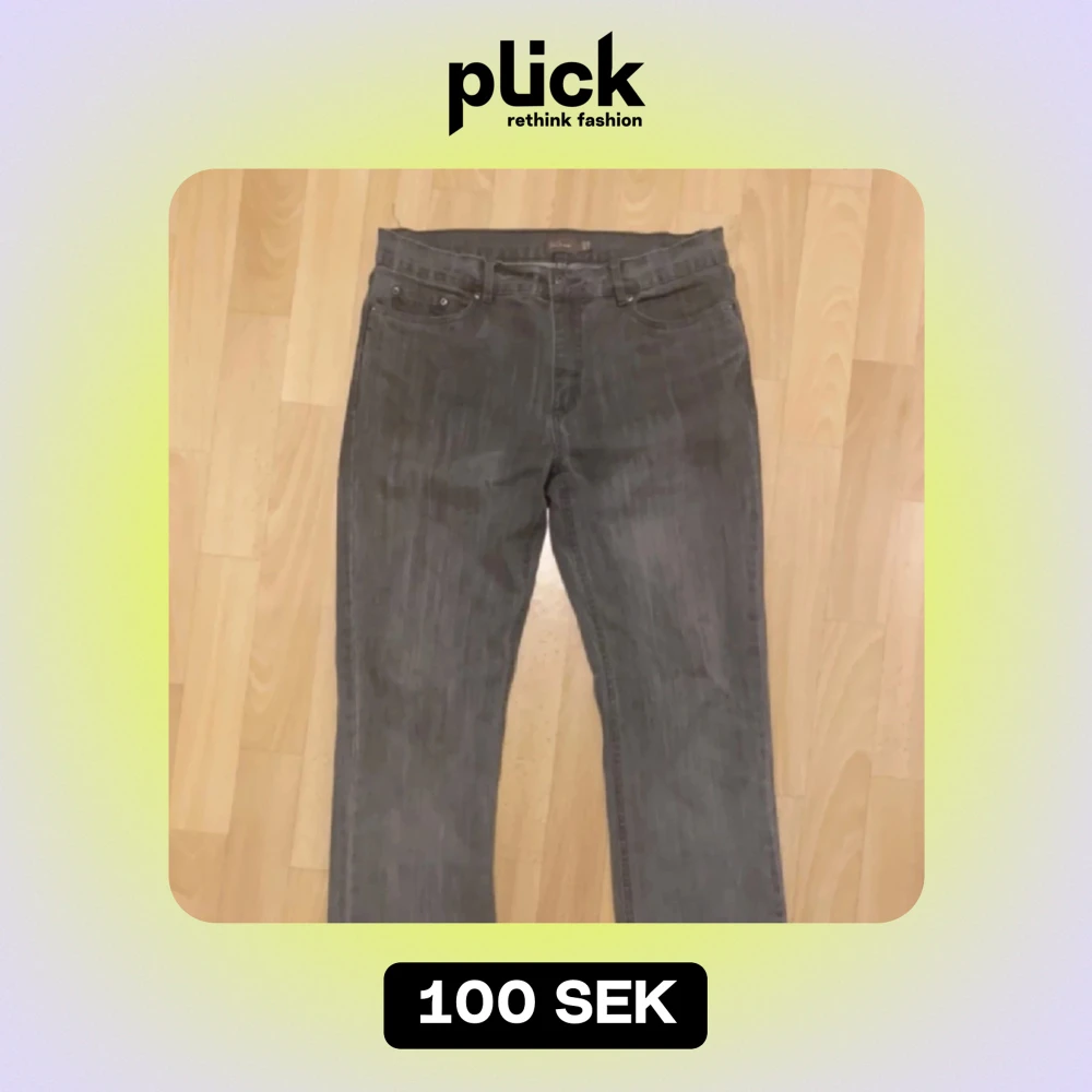 Ett par gråa jeans som jag aldrig använder, har gjort ett litet snitt längst ner för att dom ska bli lite mer bootcut