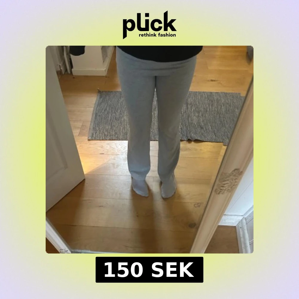 Säljer ett par gråa joga byxor från BikBok i storlek S. Byxorna har en bekväm passform med bred midja och är perfekta för en avslappnad stil. De är tillverkade i ett mjukt material som gör dem sköna att bära. Använt 2 gånger