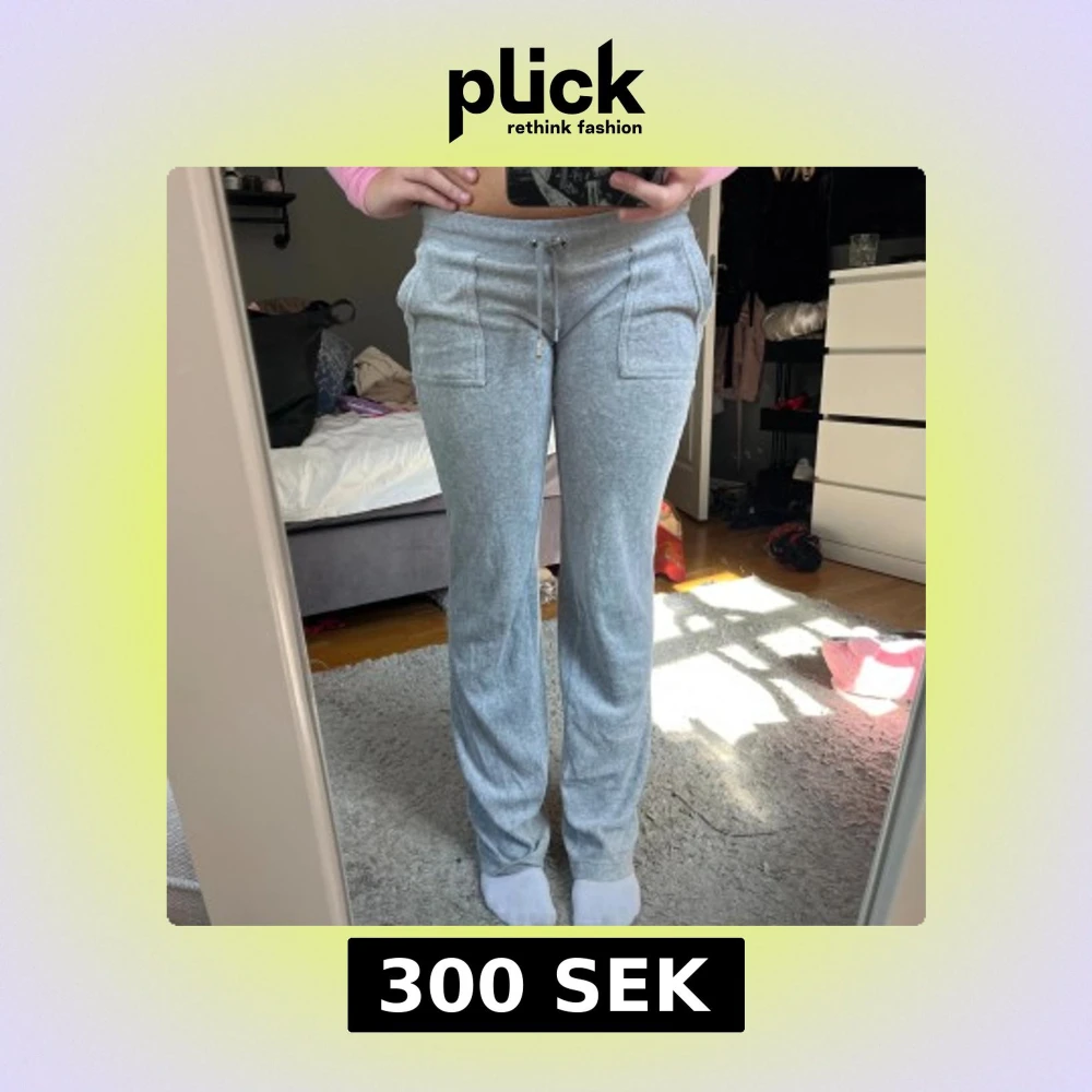Säljer mina gråa lågmidjade juicy byxor. Jag har själv sytt om dom lågmidjade och sedan lämnat in dem till en skräddare. De saknas även en metall bit på banden. Pris kan diskuteras!