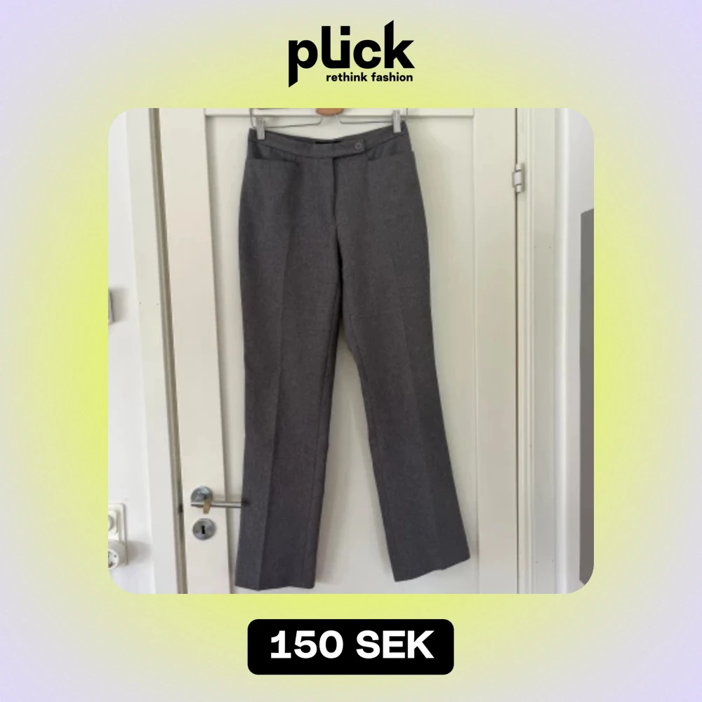 Säljer dessa superfina gråa kostymbyxor som tyvärr är för små för mig! Köpta secondhand men är i superbra skick! Byxorna är väldigt små i storleken! Midjemått: 36 cm. Innerbenslängd: 81 cm. 🌷