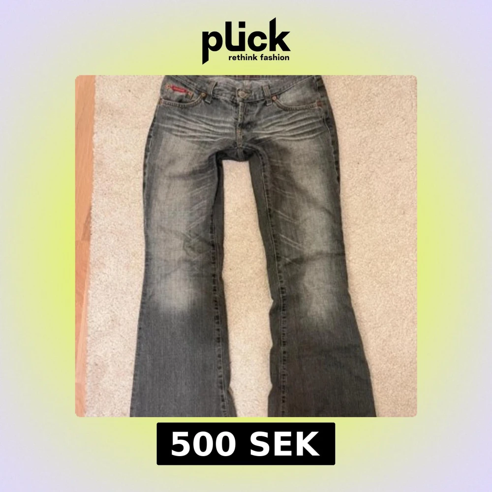 säljer dessa jättesnygga jeans då de inte kommer till användning något mer, inga defekter förutom att de är lite slitna längst ner men det syns knappt (sista bilden) midjemått är 40cm, Innerbenslängd 79cm och grenmåttet är 17cm! de sitter ganska långt ner på midjan. PRIS KAN DISKUTERAS💕skriv för frågor!