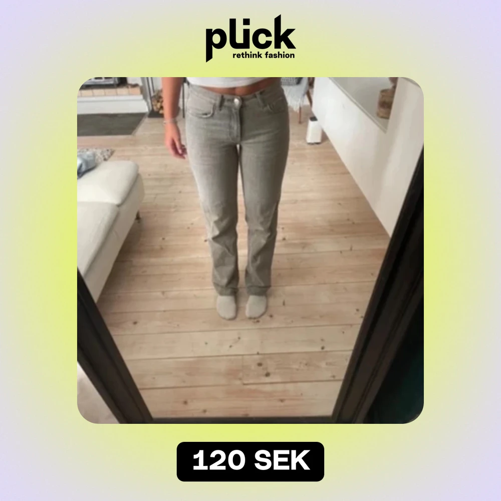Gråa straight low waisted jeans från gina i storlek 34 som sitter super fint. Använda men de syns inte, bra skick och nypris 600 kr, passar både XS och S (LÅNADE BILDER)