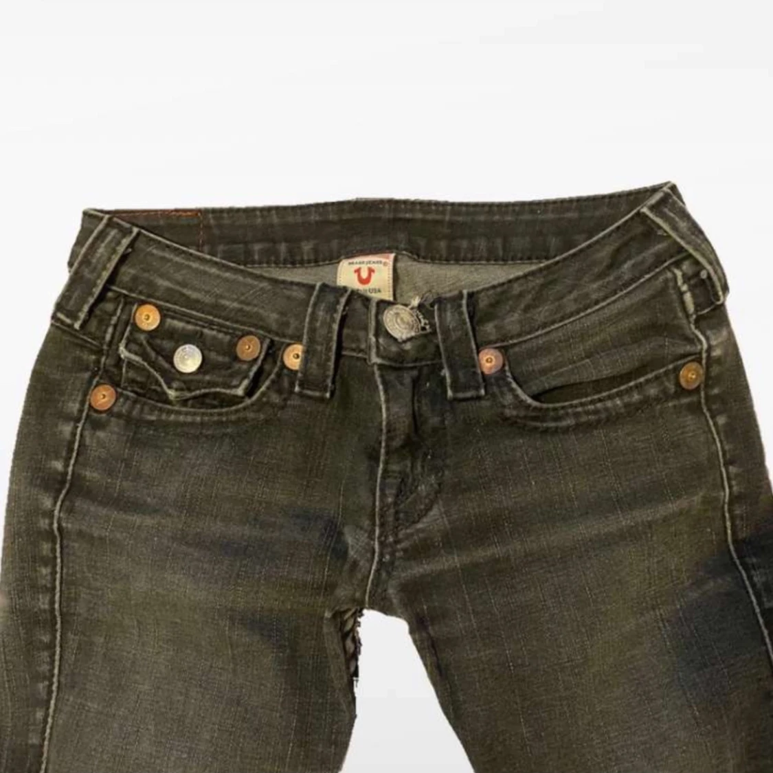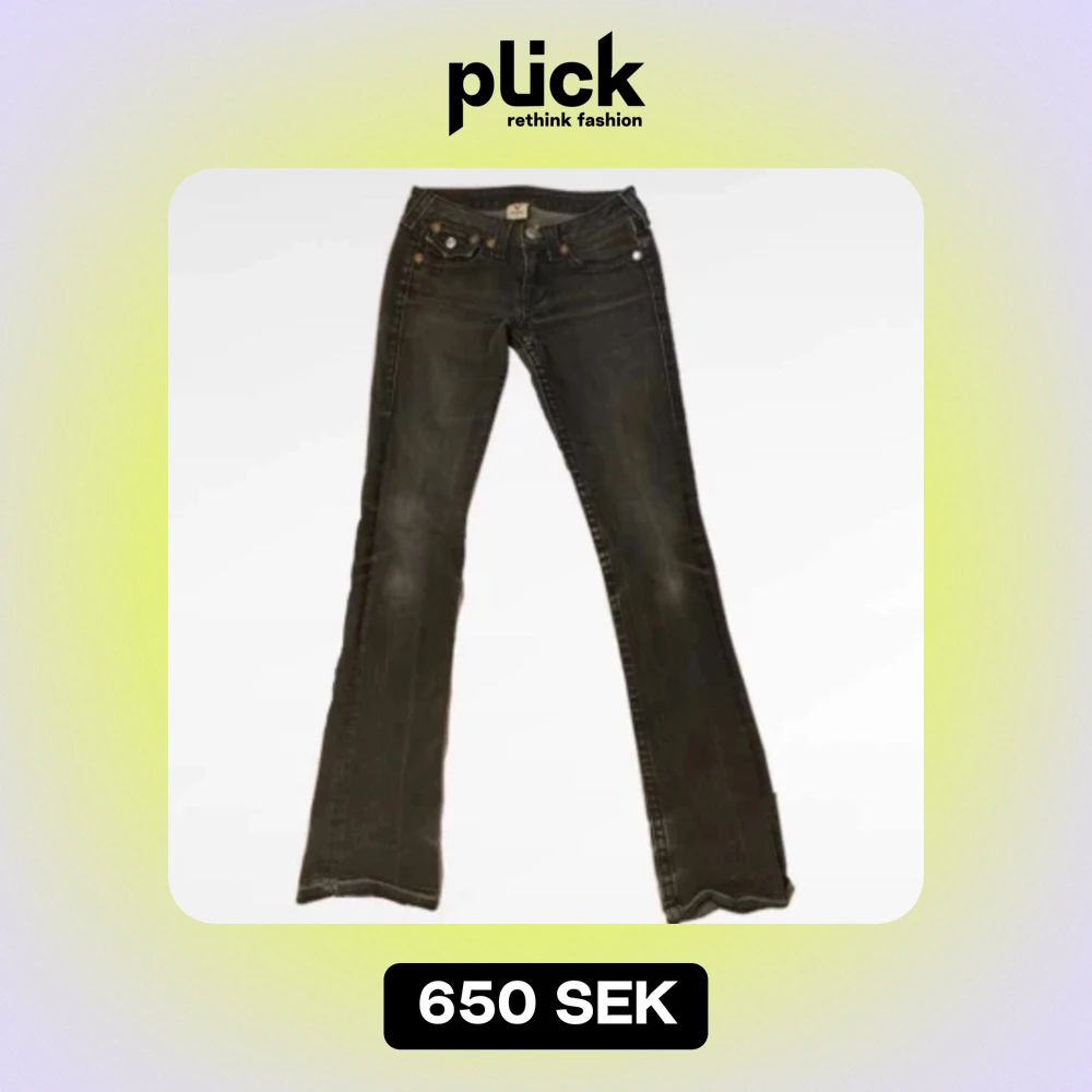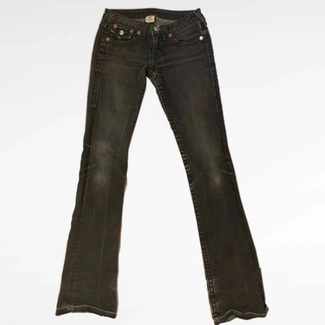 Gråa lowrise bootcut true religion jeans i storlek W27 i väldigt bra skick. Inga hål eller fläckar finns på byxorna. Säljs pga rensning av garderob och då dem inte kommer till så mycket användning. ❣️ Öppen för frågor❣️ Köpta för 800kr på plick❣️