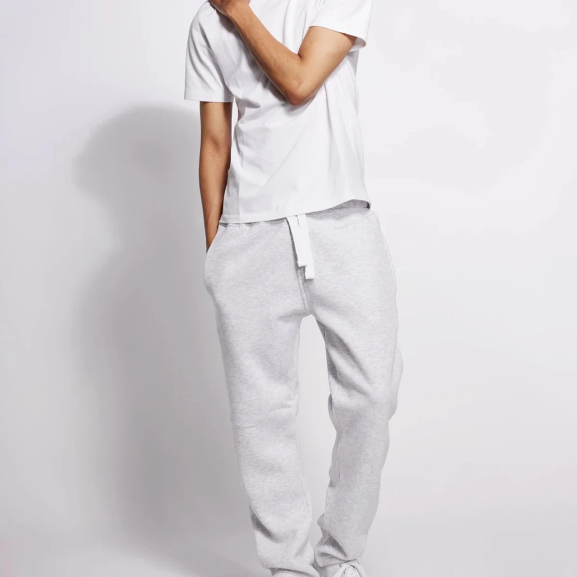 Snygga ljusgrå mjukisbyxor med avslappnad passform och bred snörning i midjan. Perfekta för chill dagar eller när du vill vara bekväm. Tillverkade i mjukt bomullsmaterial som känns skönt mot huden. Passar dig som gillar en loose och casual stil. Helt nya prislappen är kvar på