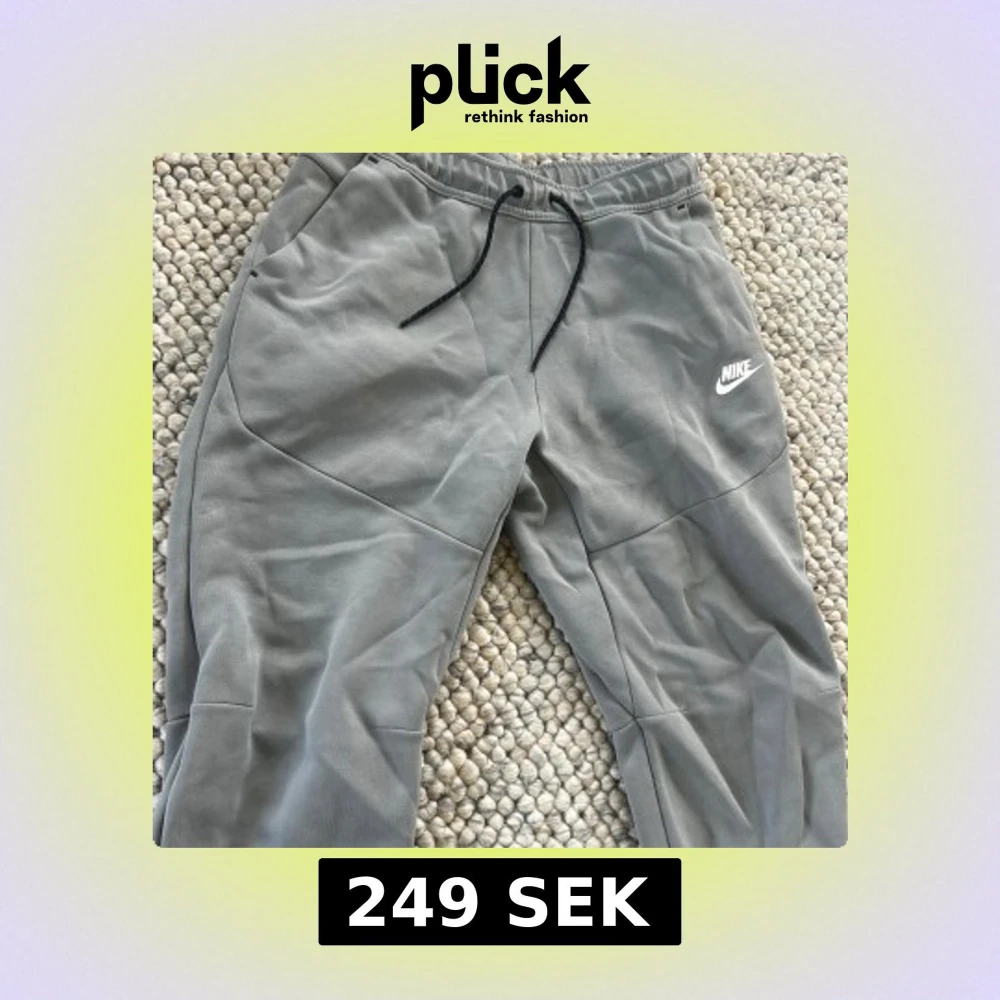 Snygga grå mjukisbyxor från Nike med svart snörning i midjan och vit logga på låret. Byxorna har en relaxed fit och är perfekta för chill eller träning. Tillverkade i mjukt bomullsmaterial för extra komfort.