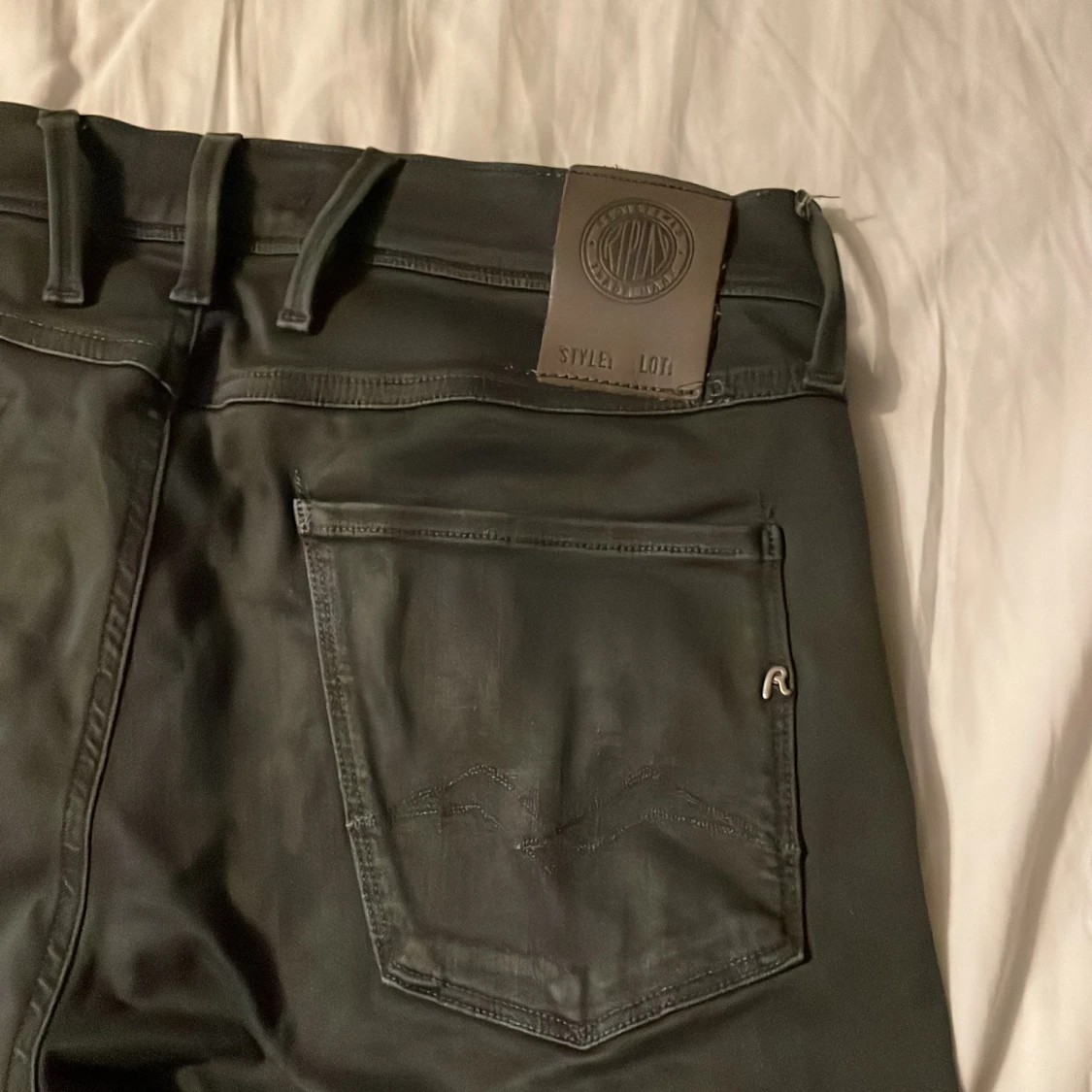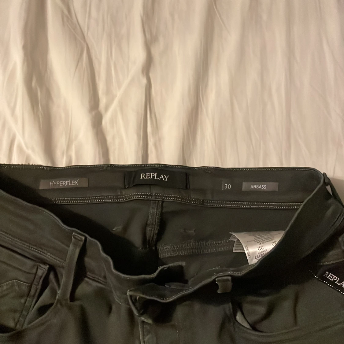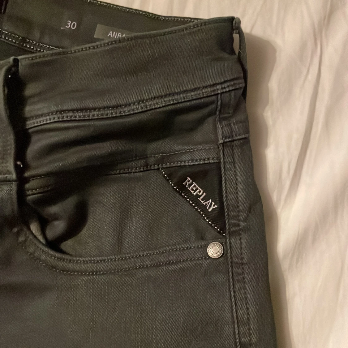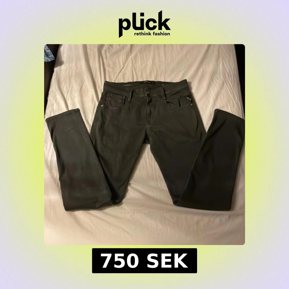 Säljer ett par gråa Replay Anbass hyperflex jeans i slim fit. Jeansen har en modern look och är tillverkade i stretchigt material för extra komfort.