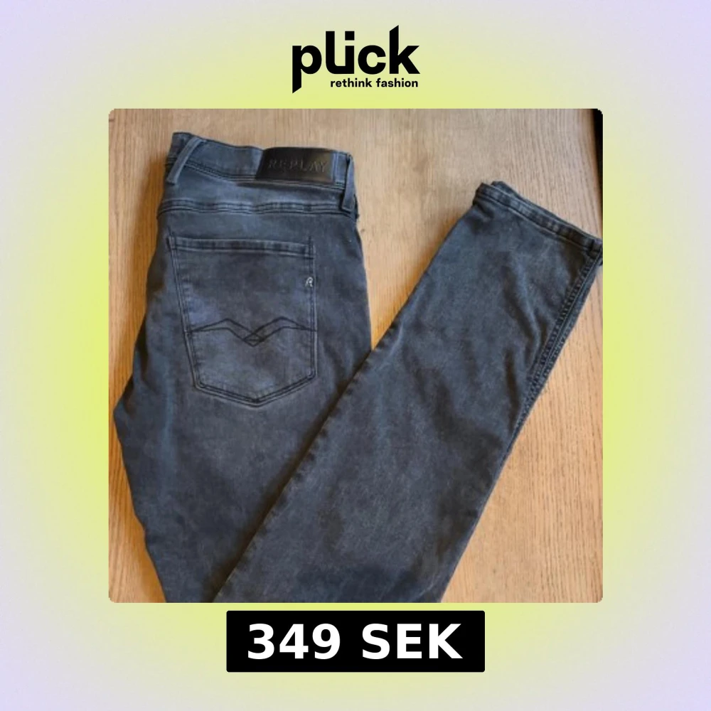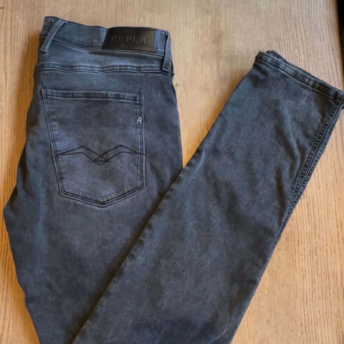 Snygga grå jeans från Replay. De har en diskret logga på bakfickan och en bekväm passform. Perfekta för en stilren look. Dom är i W34 och längd 34