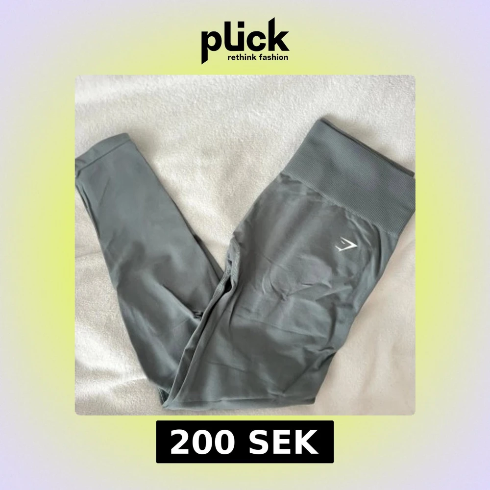 Snygga gråa tights från Gymshark med hög midja och diskret logga på låret. Tightsen har en tight passform och bred ribbad linning som ger extra stöd.