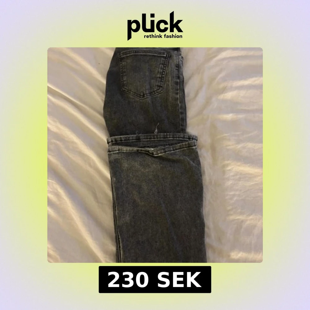 Säljer ett par gråa jeans från Gina Tricot i storlek 32. Dem har bra skick men lite märke längs ner på byxorna.