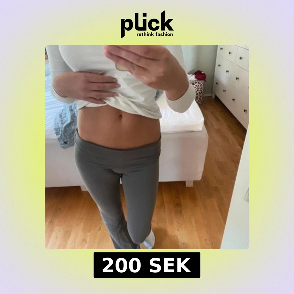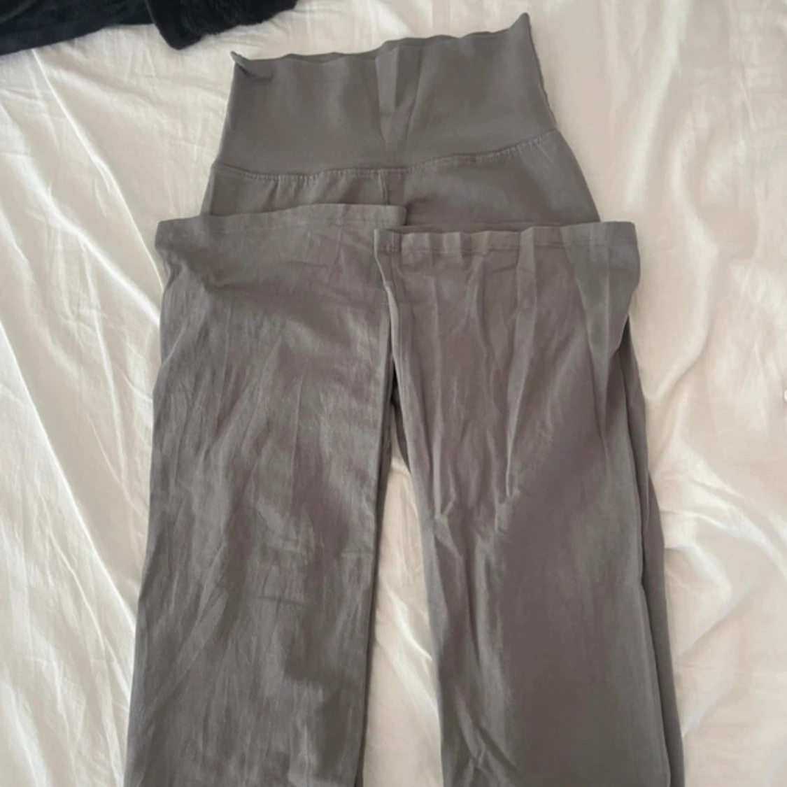 Säljer ett par grå mjukisbyxor med raka ben. Byxorna är i ett mjukt och stretchigt material som är riktigt skönt att ha på sig. Perfekta för chill eller träning. Snygg och enkel design utan synliga detaljer.