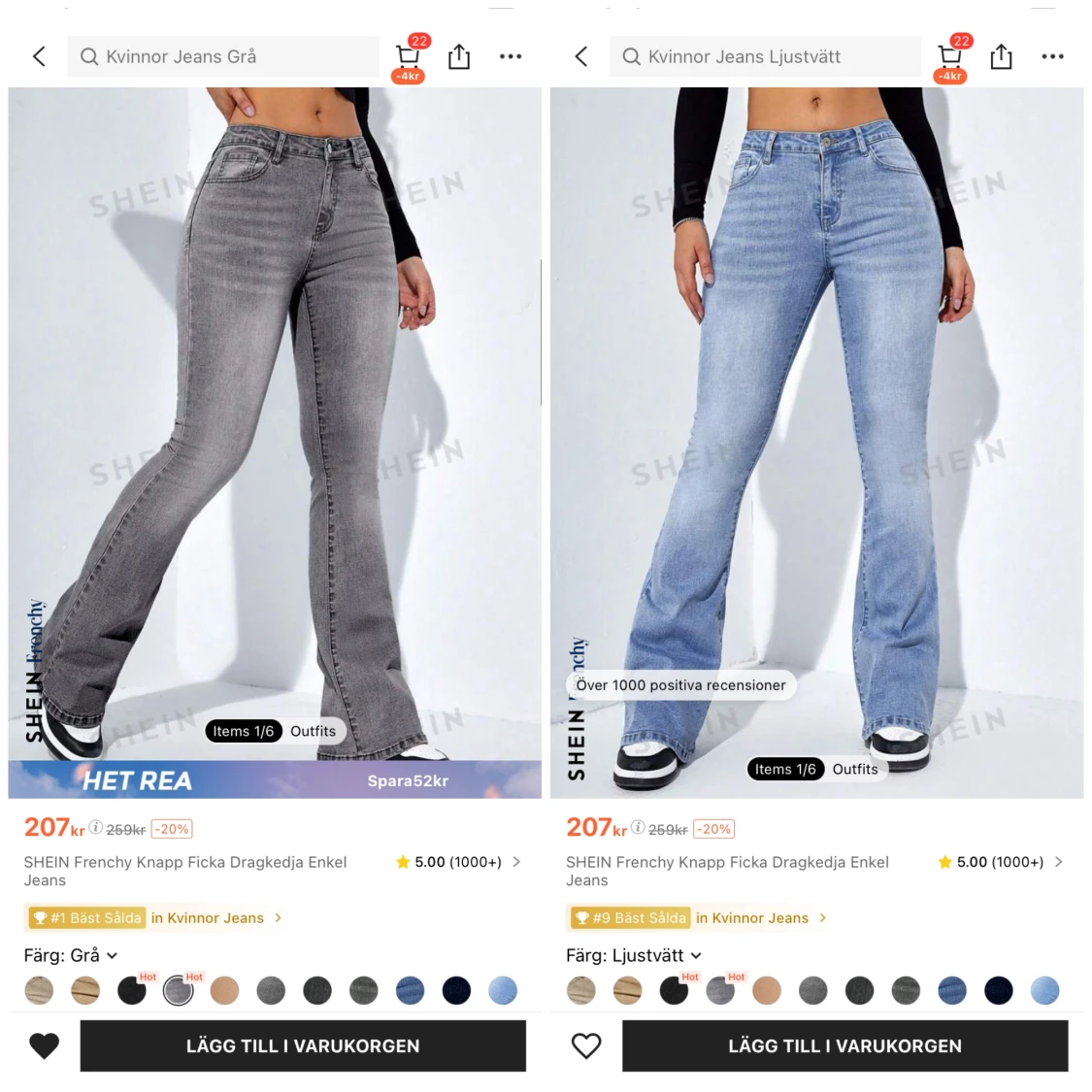 2 par byxor, båda från shein i strl M. Ett par blåa och ett par gråa, säljes styckvis eller ihop. De är endast testade och aldrig använda då de inte passade. Båda kostade 259 (styck) och säljer för 150 st eller 275 för båda. Köpare betalar frakt!