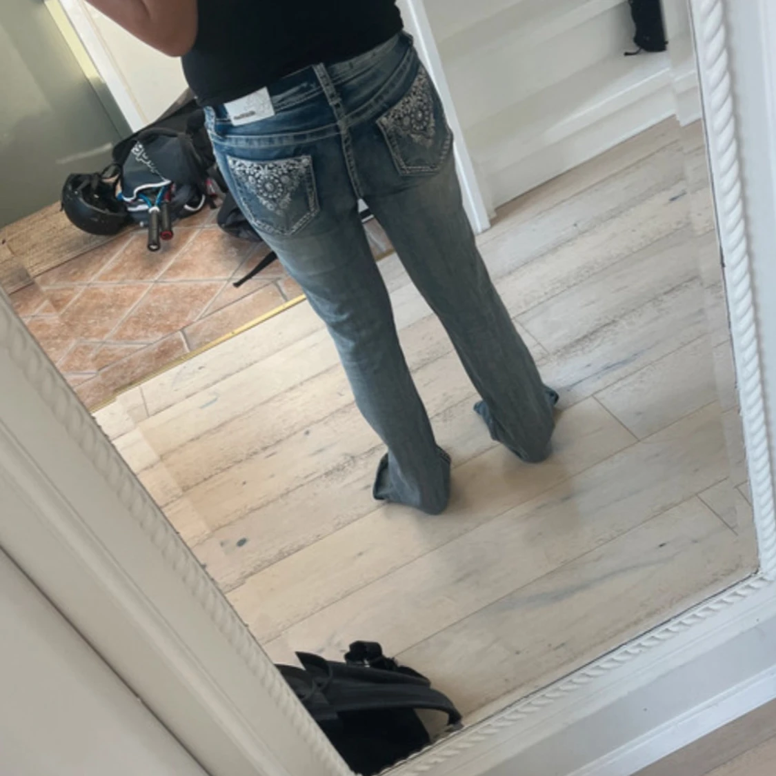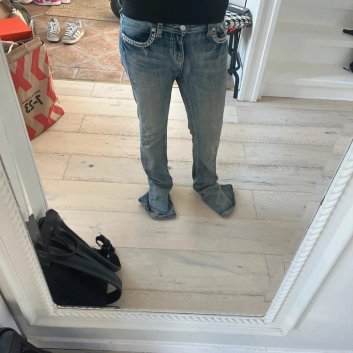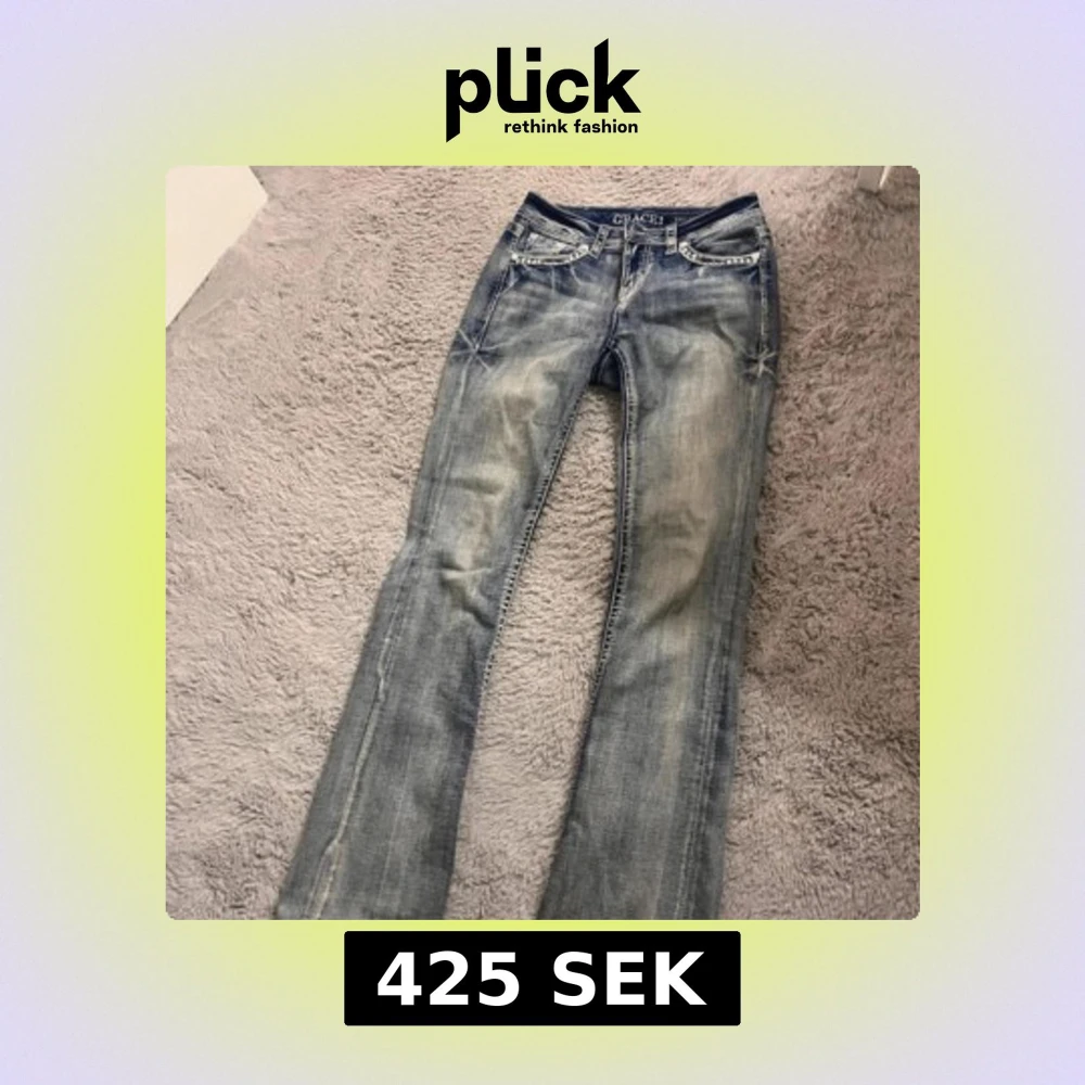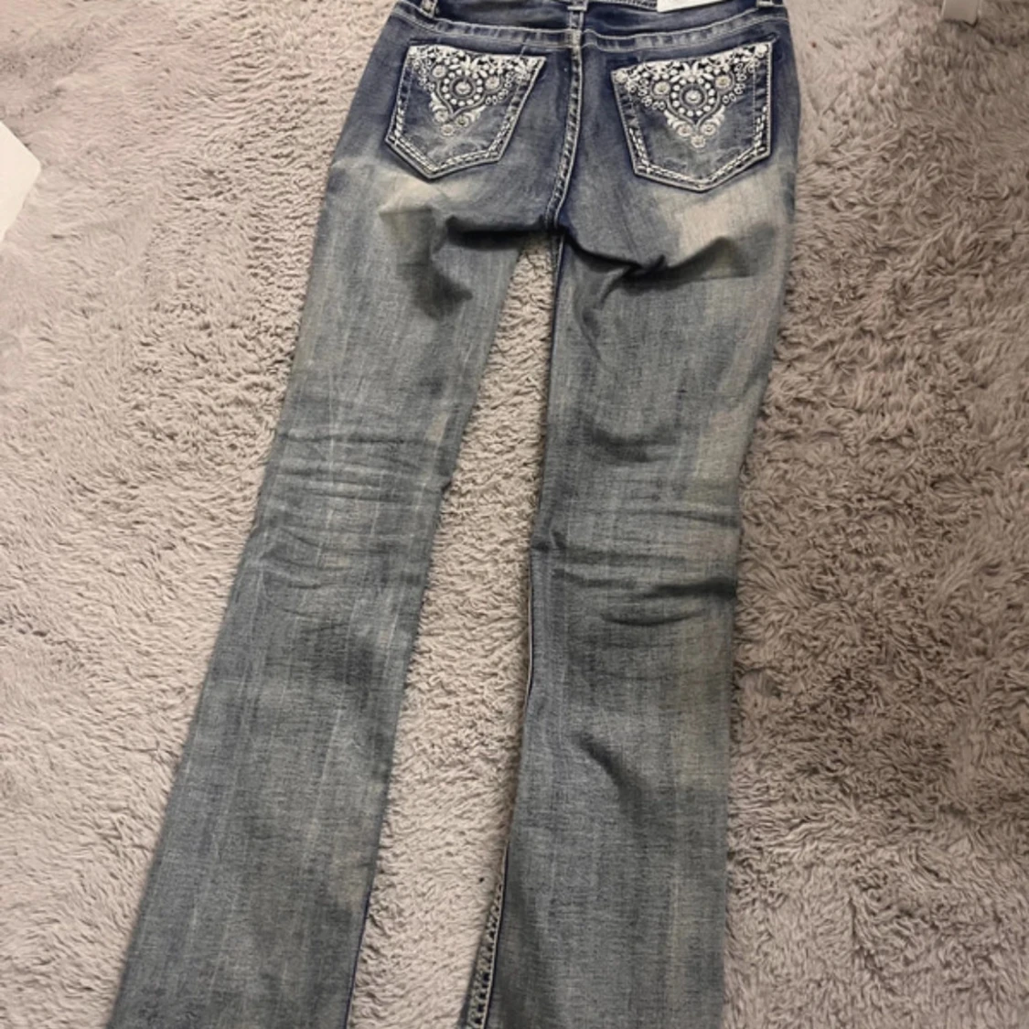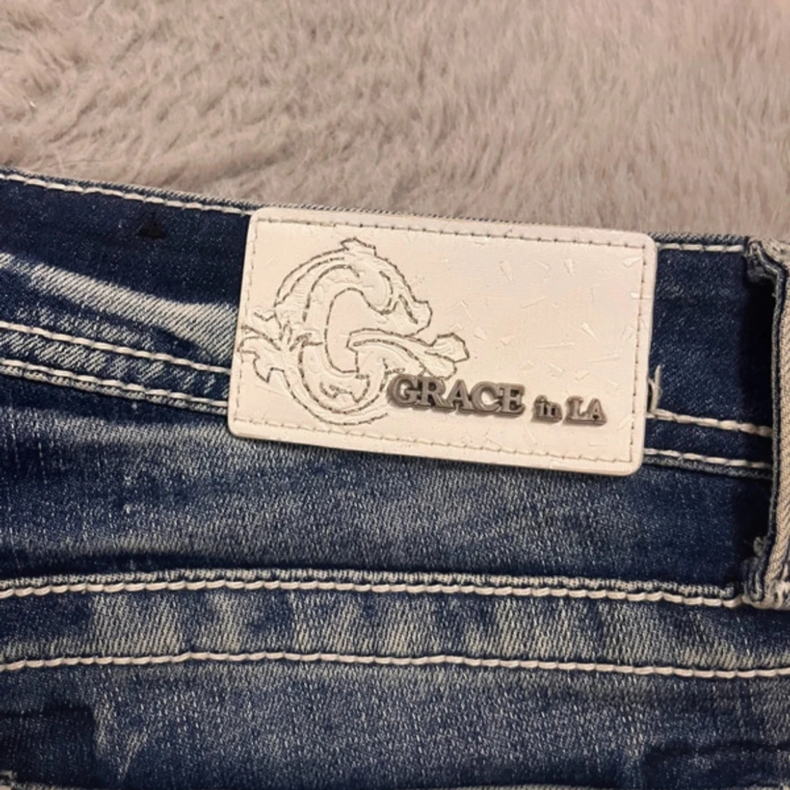 Snygga ljusblå bootcut jeans från Grace in LA med slitningar och broderade detaljer på bakfickorna. Jeansen har klassisk femficksdesign, dekorativa sömmar och är tillverkade i jeansmaterial. Perfekta för dig som gillar en lite western-inspirerad look.