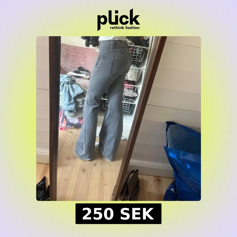 Jätte snygga grå lågmidjade jeans i storlek 36, är långa på mig som är 170! Innerbenslängd 85 ytterben 105 midja 36❤️